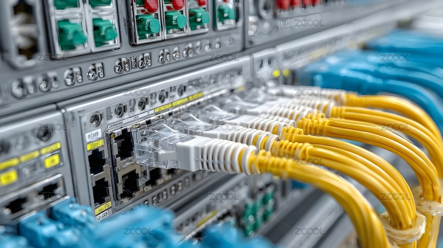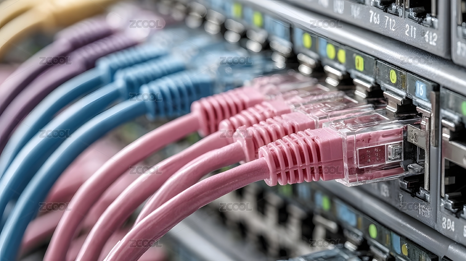 蓝色,透明,排列,布局,金属,网线,机柜,插座,连接,端口