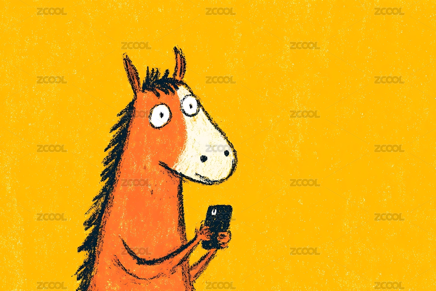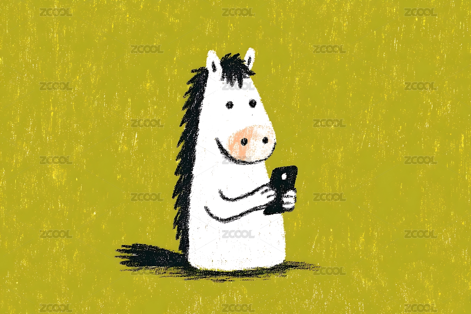 插画,可爱,动物,萌宠,黑白,艺术,卡通,牛马