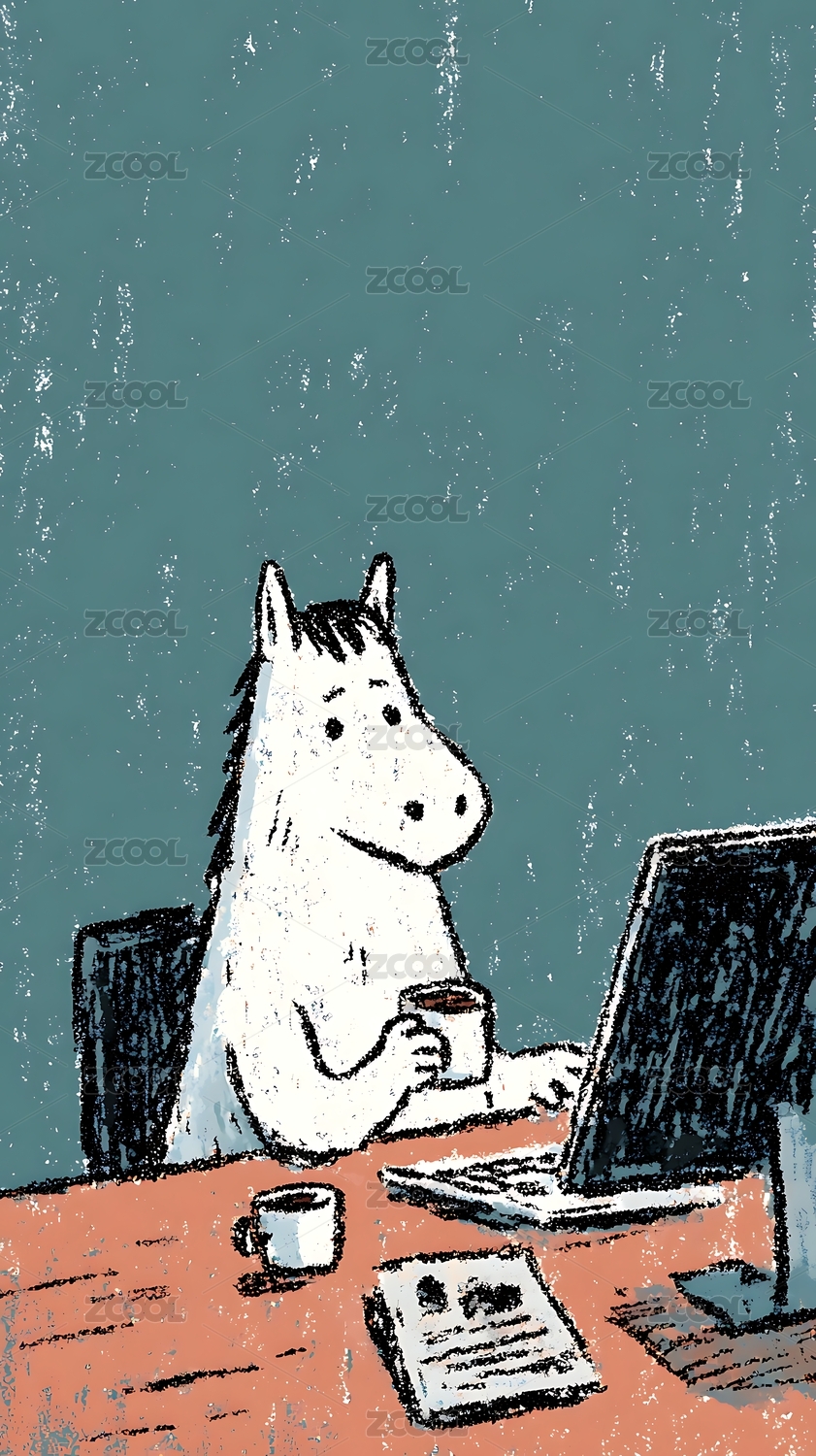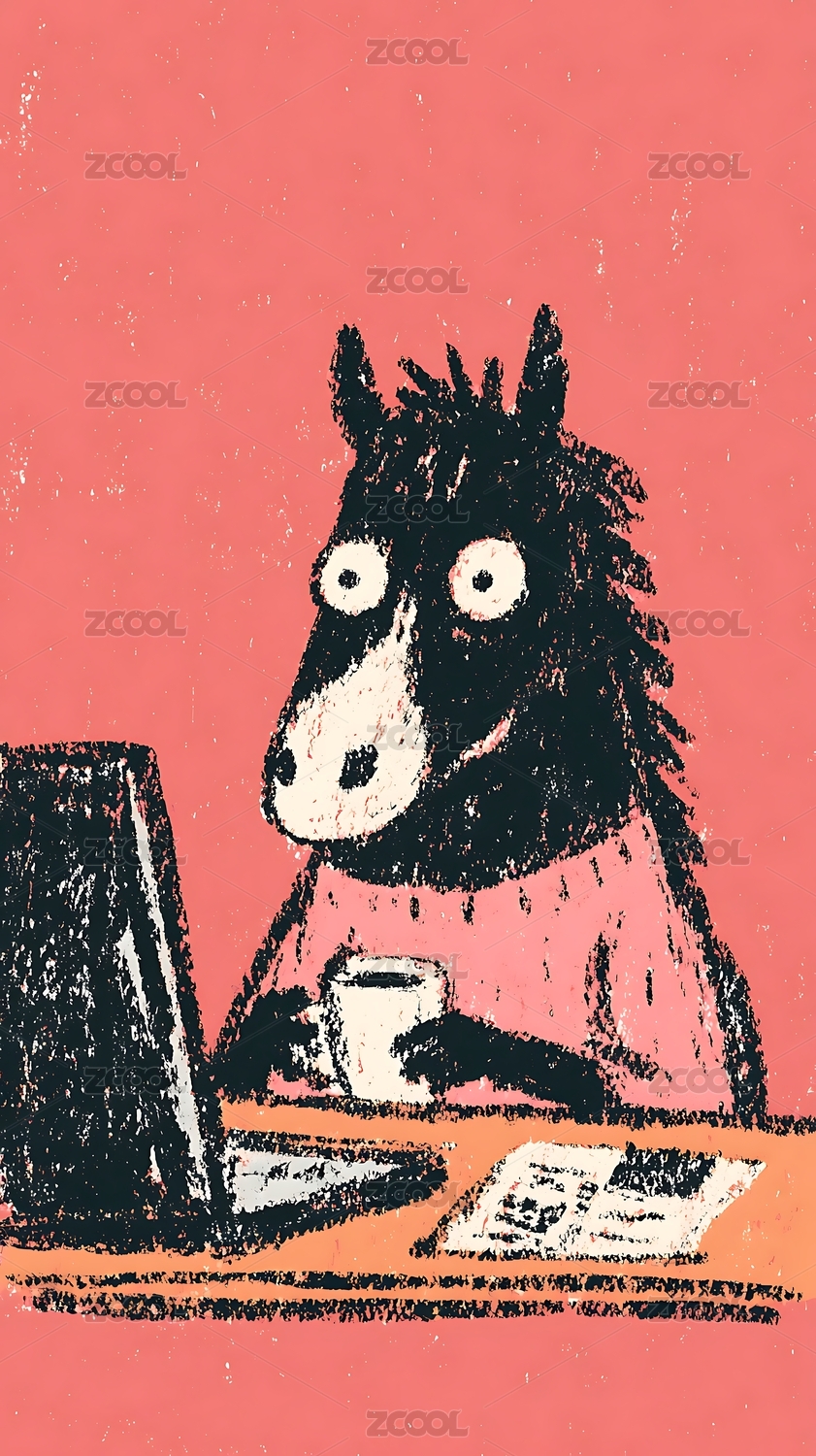 插画,可爱,动物,萌宠,黑白,艺术,卡通,牛马