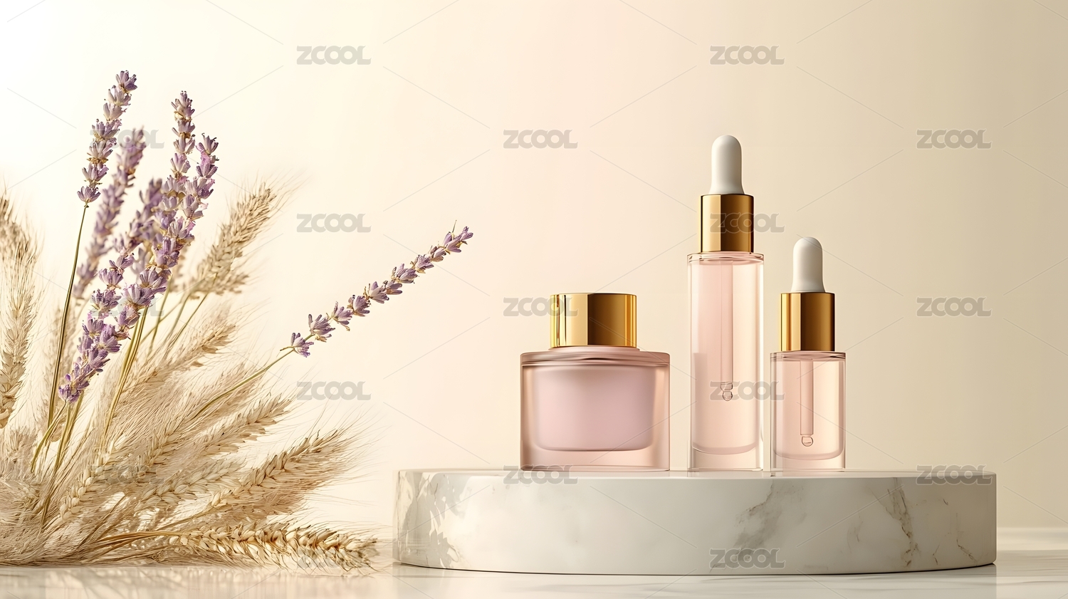 化妆品与干花的静物摆设