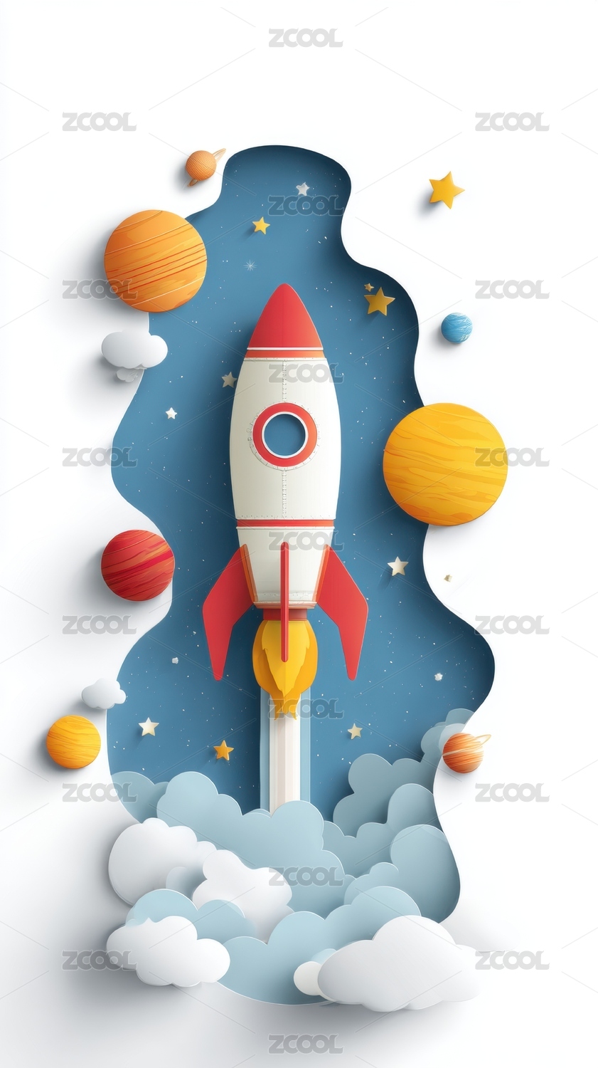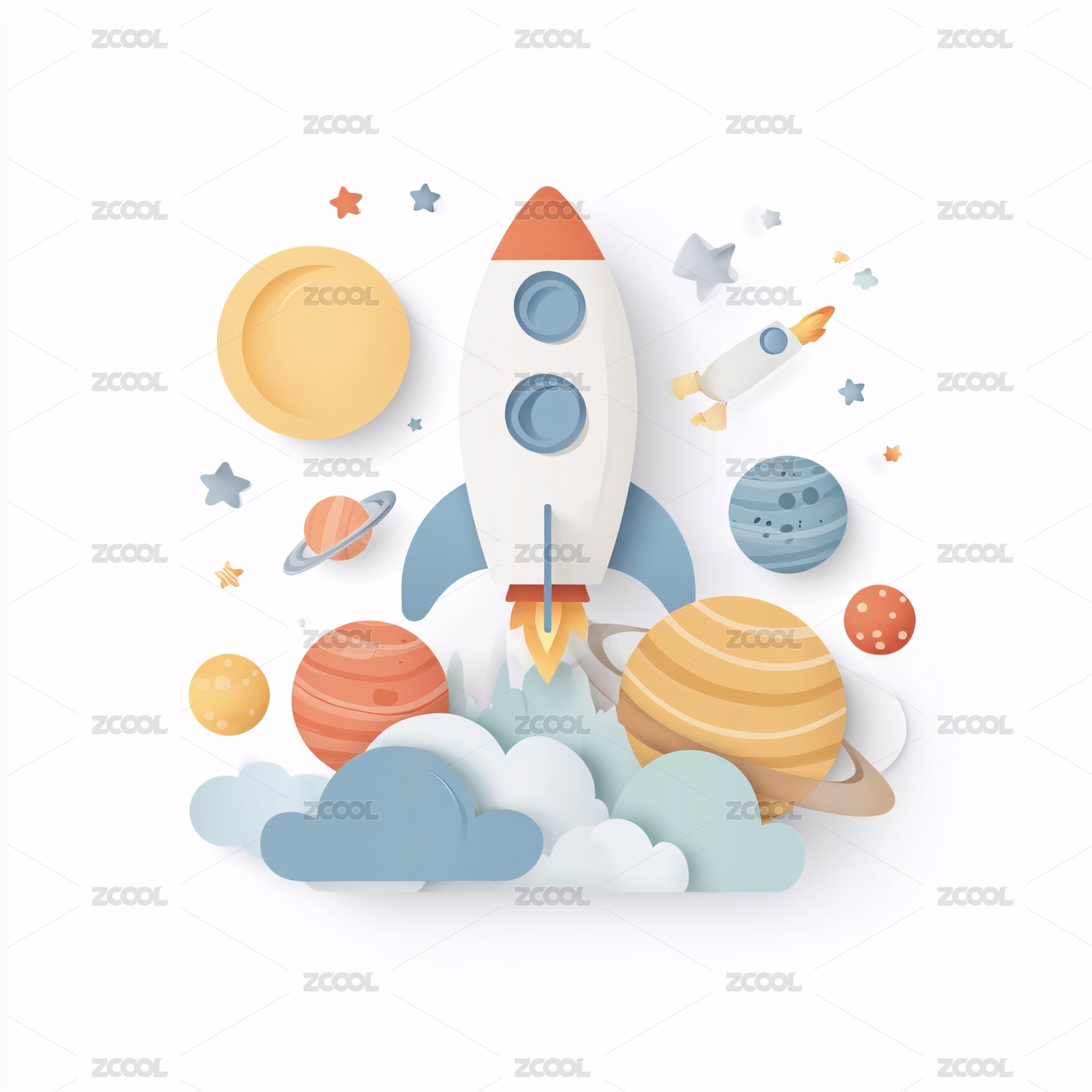 火箭,星星,云朵,插画,矢量,卡通,升空,元素,图案,主题