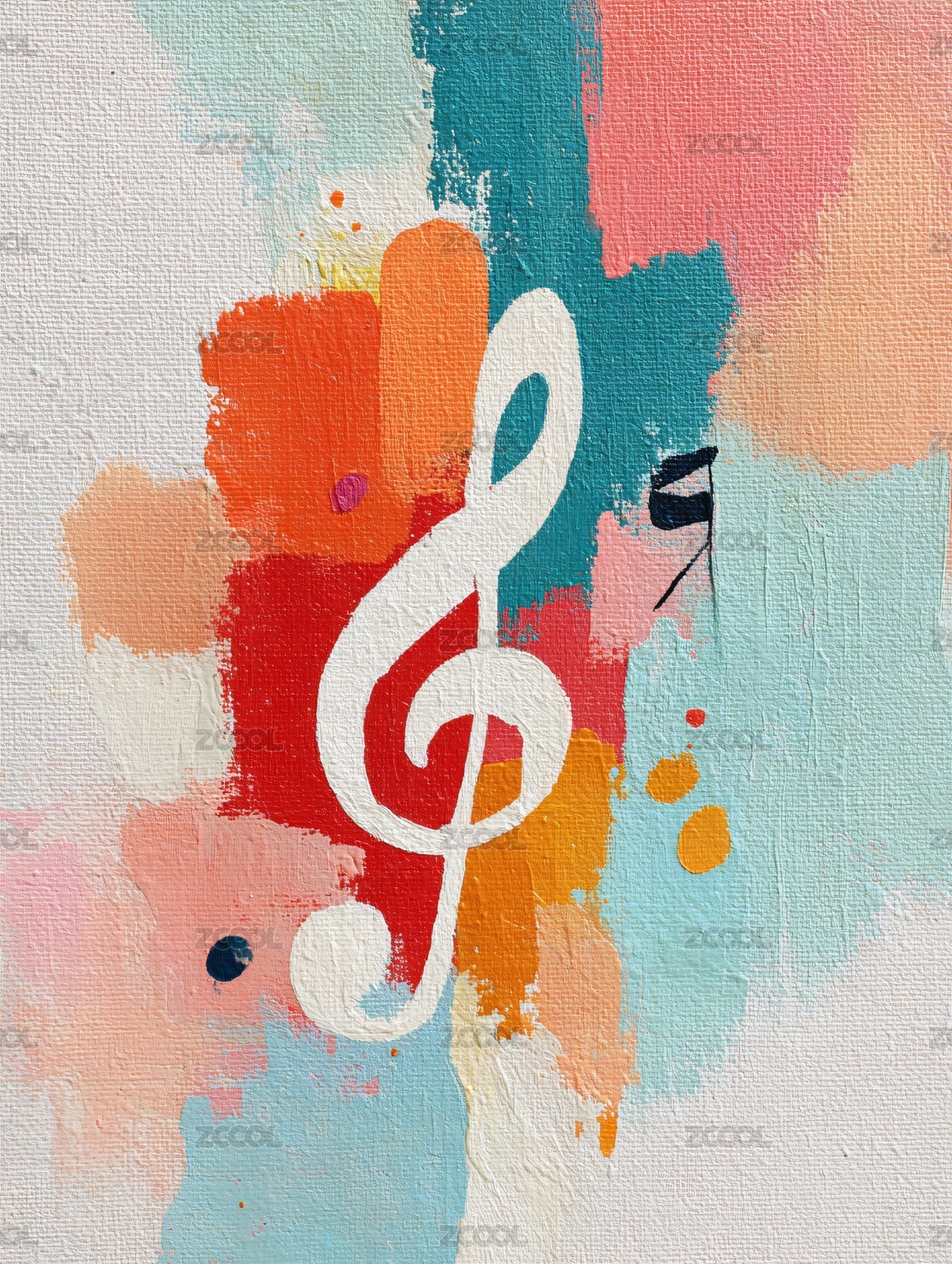 插画,音符,高音谱号,色块,音乐,艺术,色彩,图案,抽象,装饰