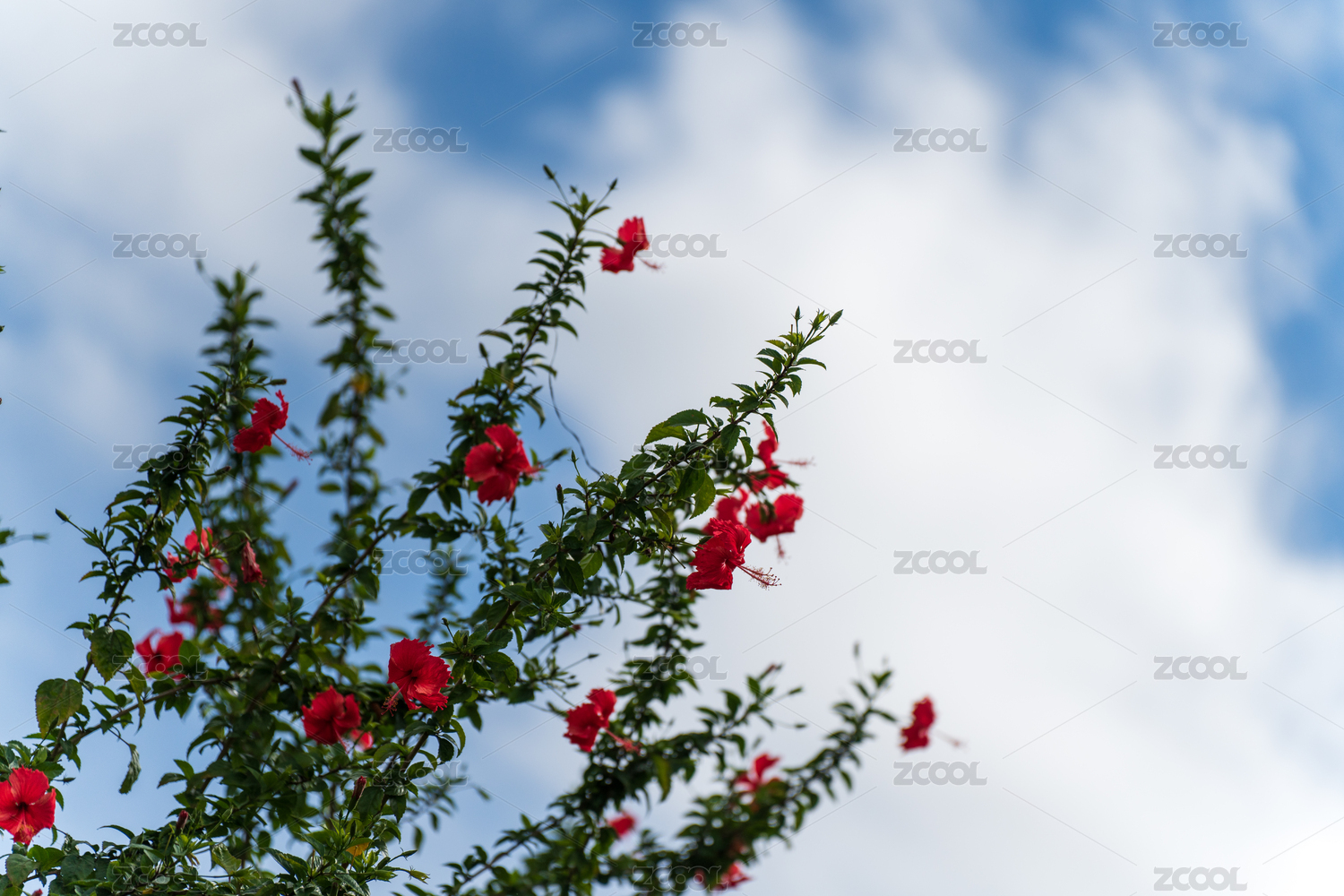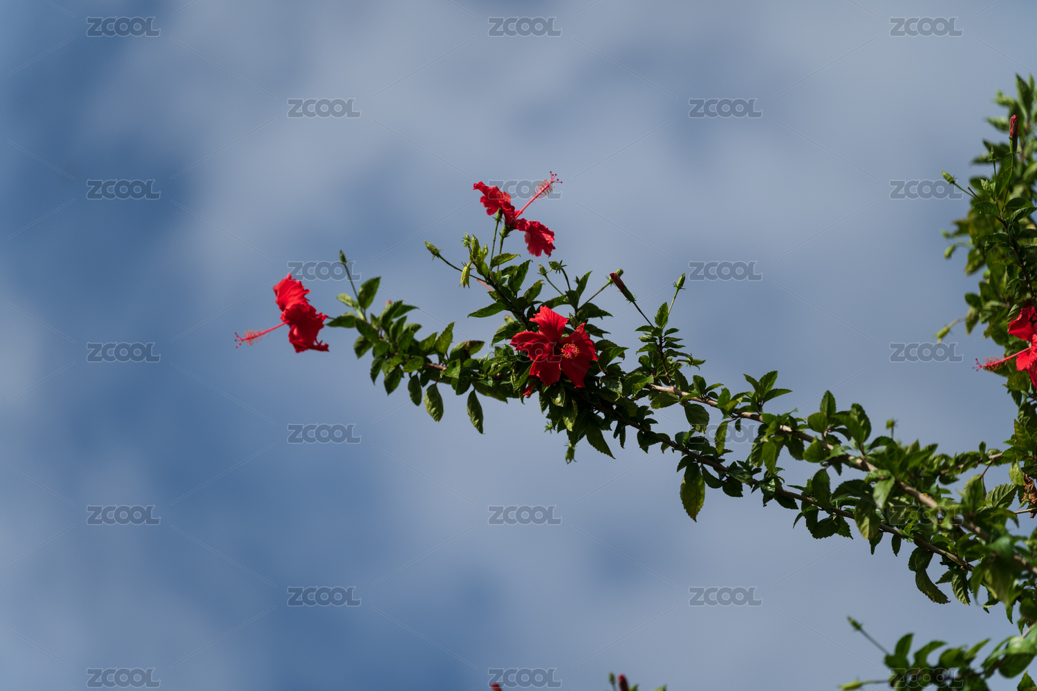 扶桑花,红色花朵,绿叶,花卉,植物,盛开,自然,鲜艳,花瓣,花蕊