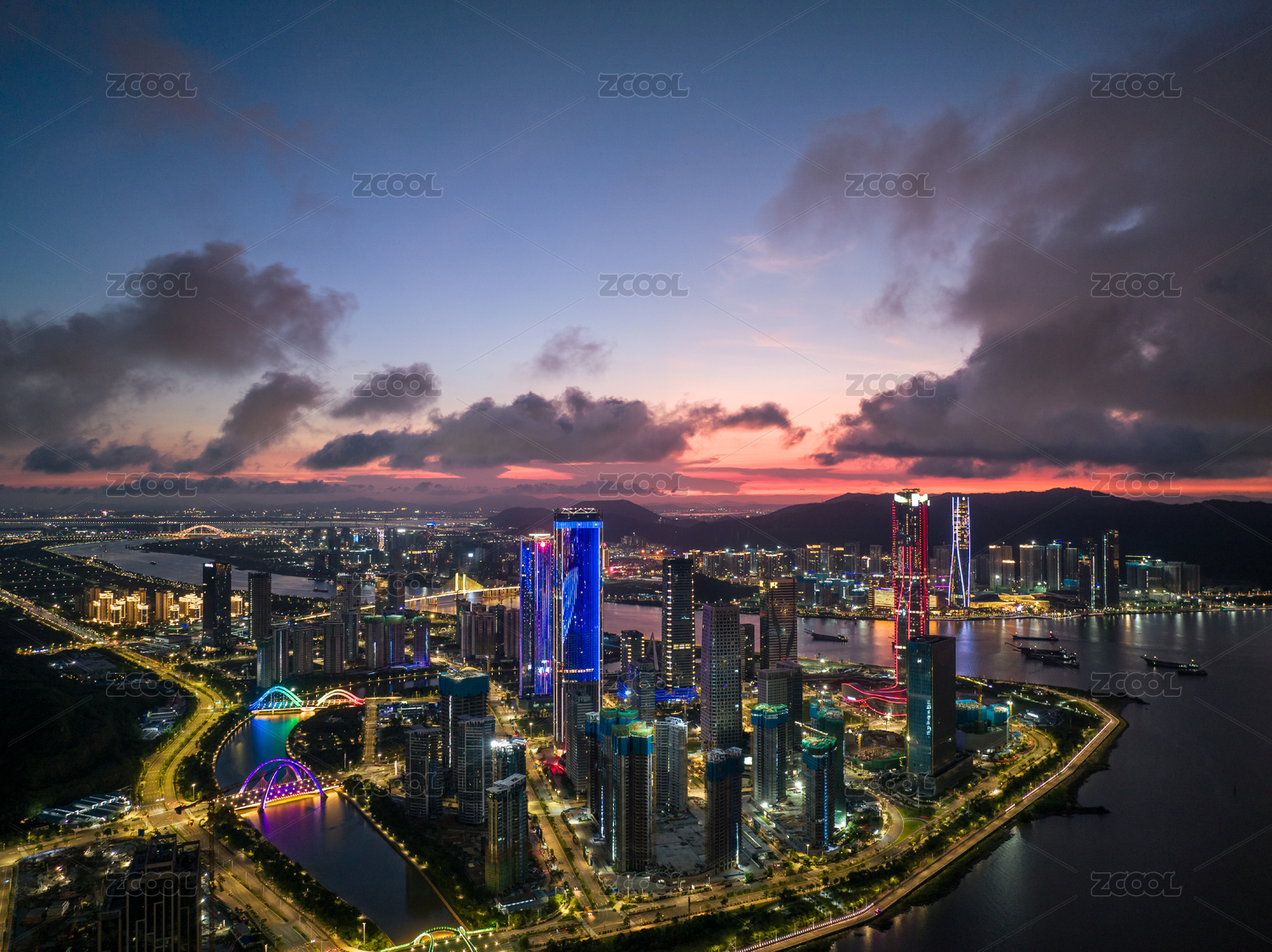 大湾区珠海横琴金融岛澳门城市夜景风光航拍