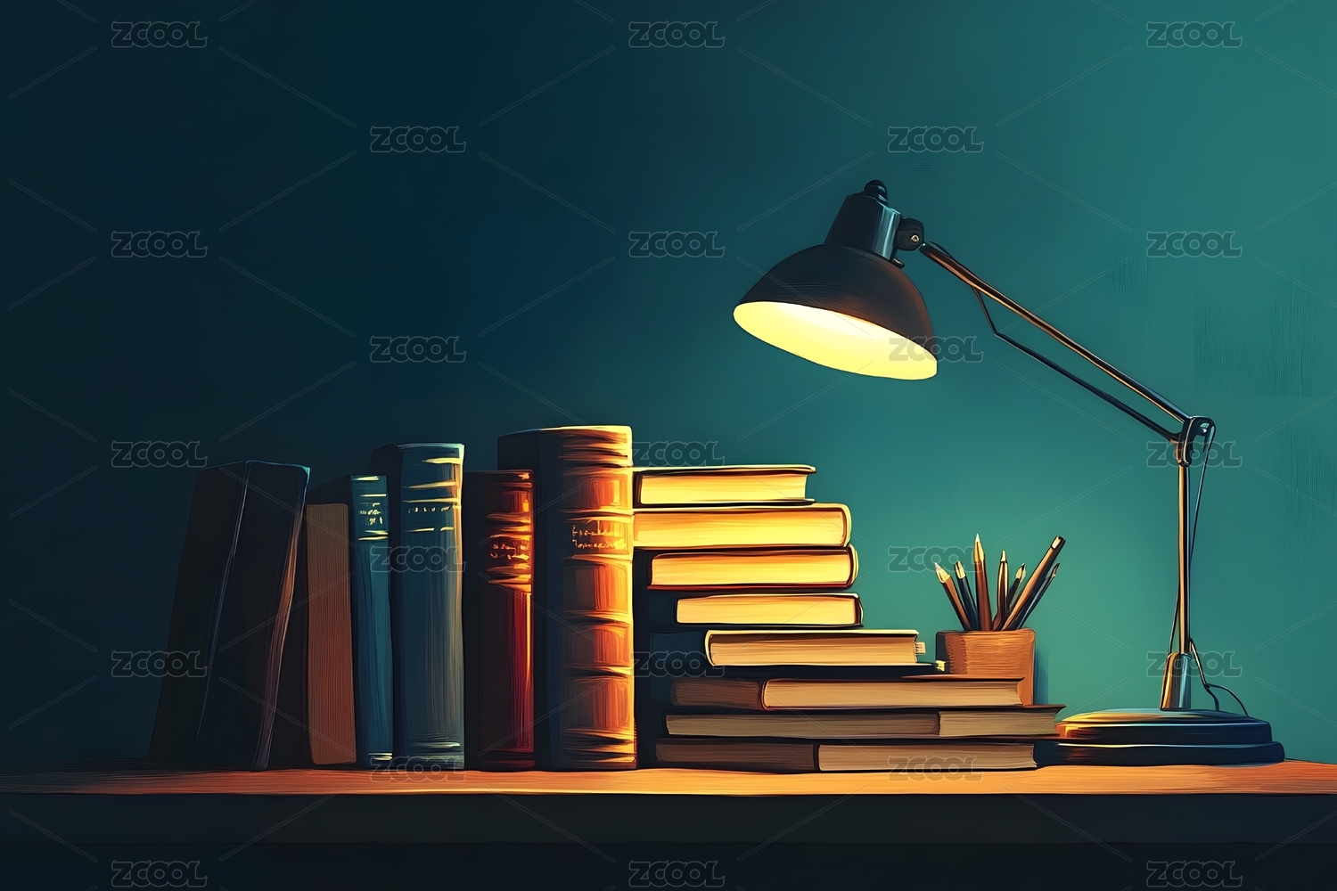 台灯与书本静谧阅读场景