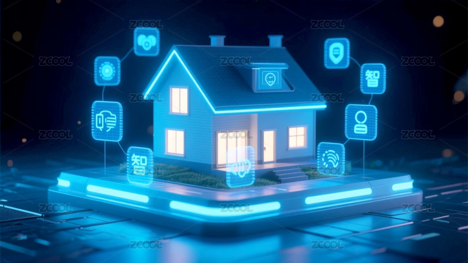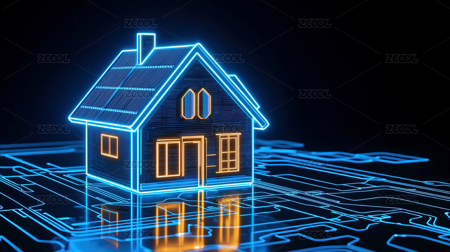物联网,连接点,科技感,未来感,数据传输,智能家居,电子设备,房屋,智能,连接