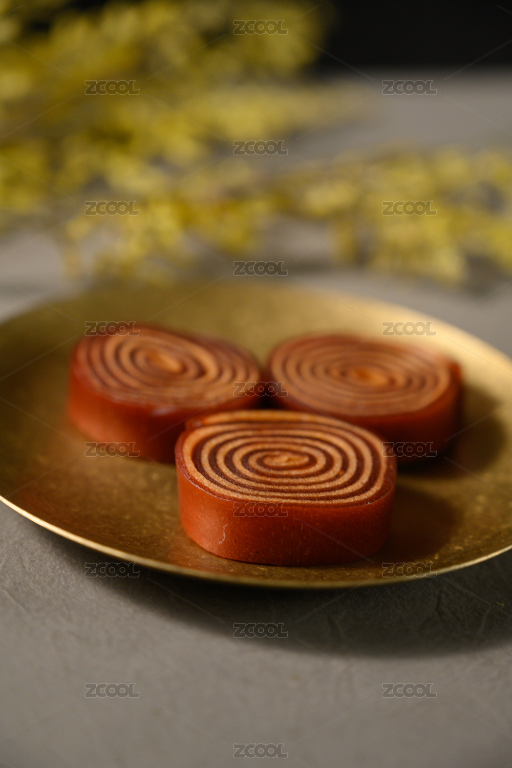 桌面上的盘子里的美味可口的山楂卷