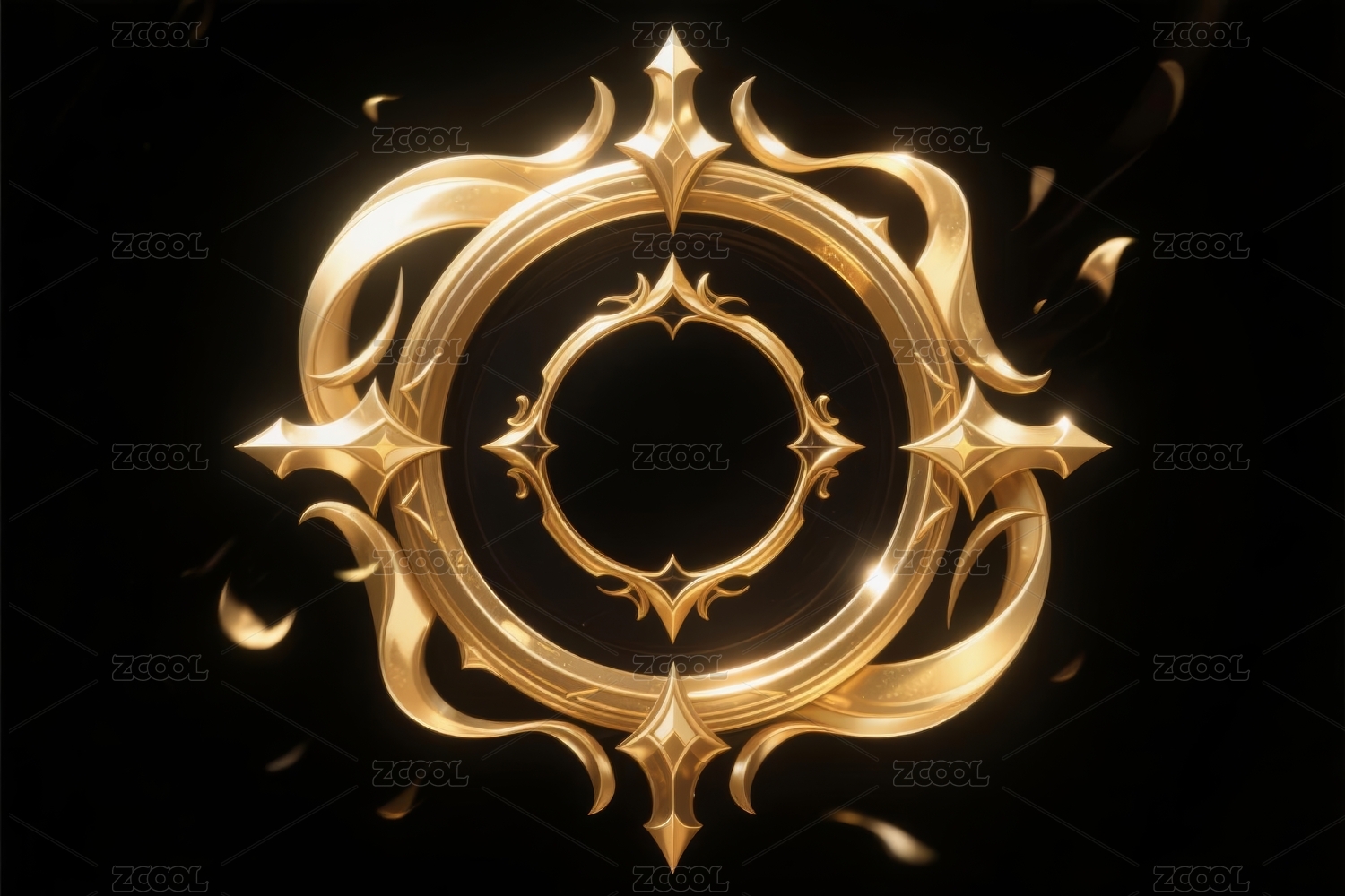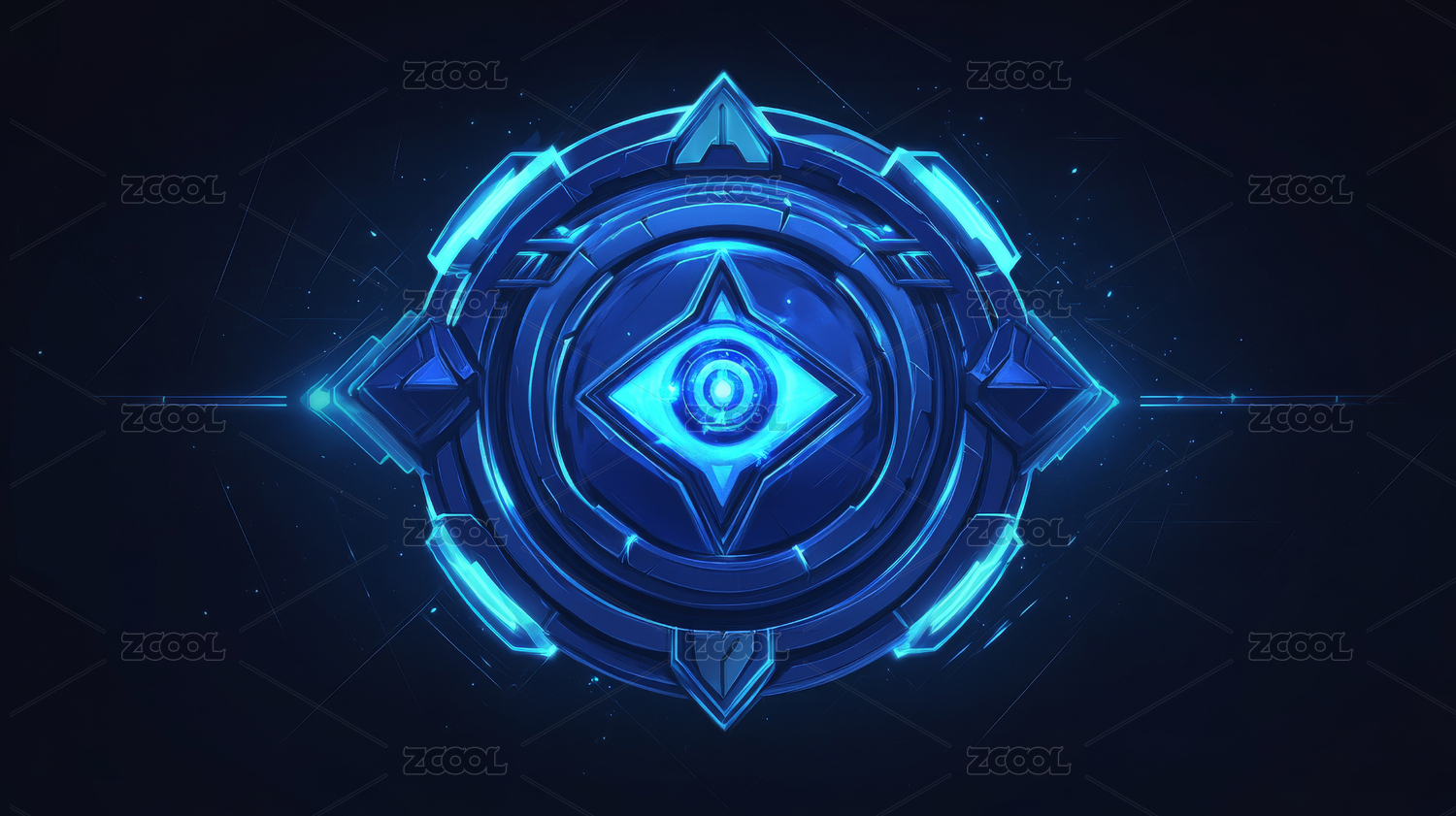 黑底游戏装备荧光色盾牌徽章3D立体插画
