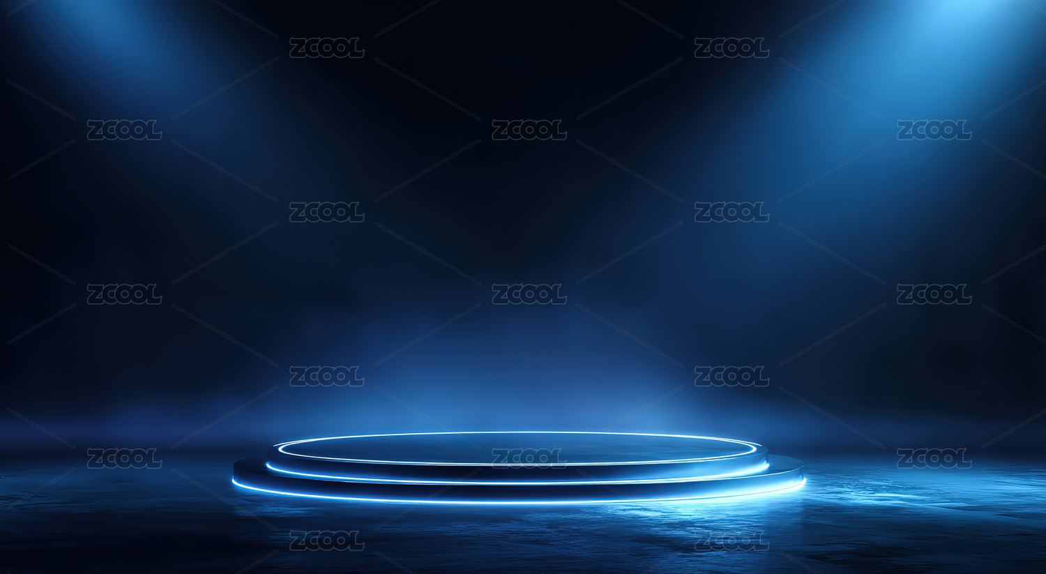 深色圆形舞台与蓝色灯光
