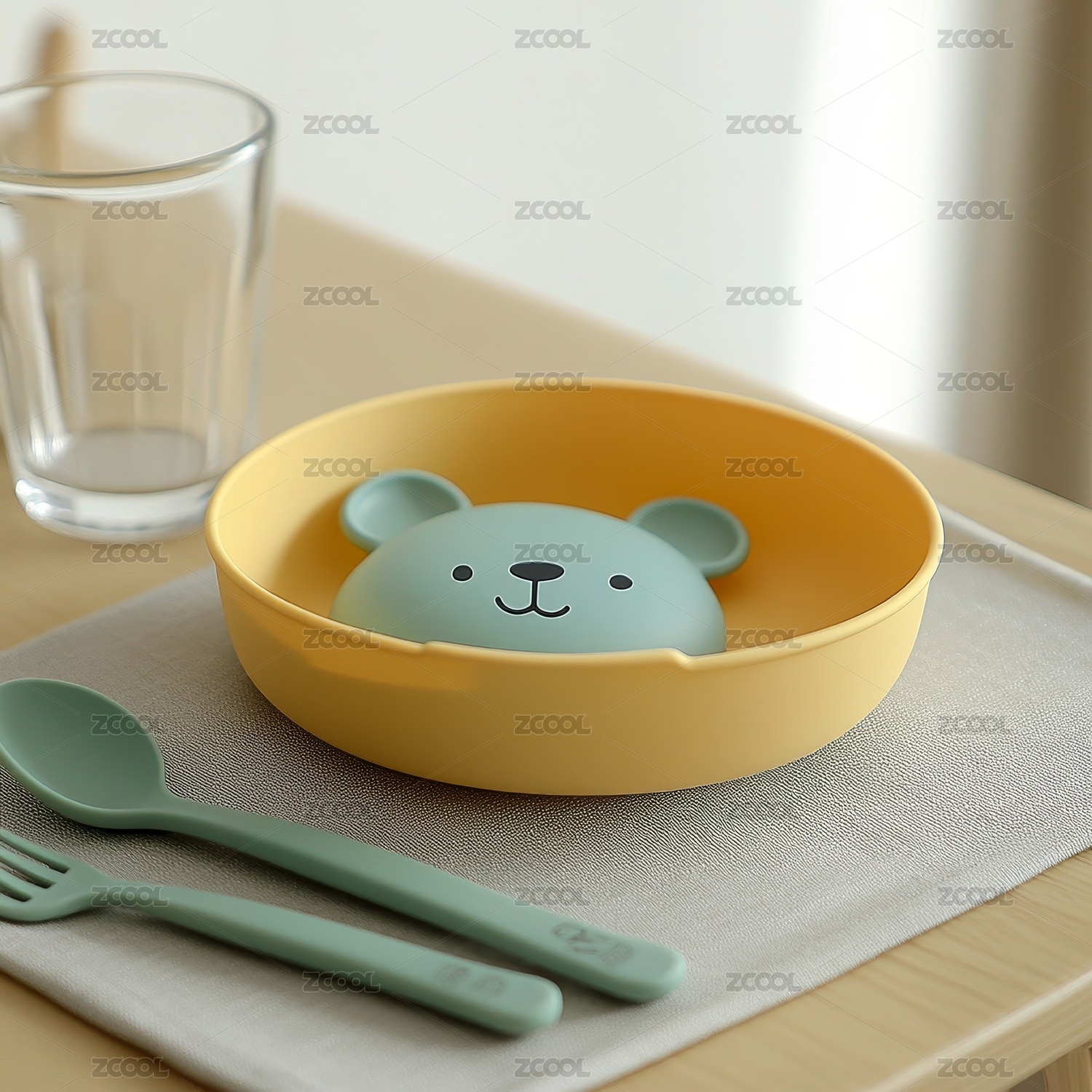 萌趣,考拉,儿童,餐具,可爱,造型,设计,黄色,碗体,浅蓝
