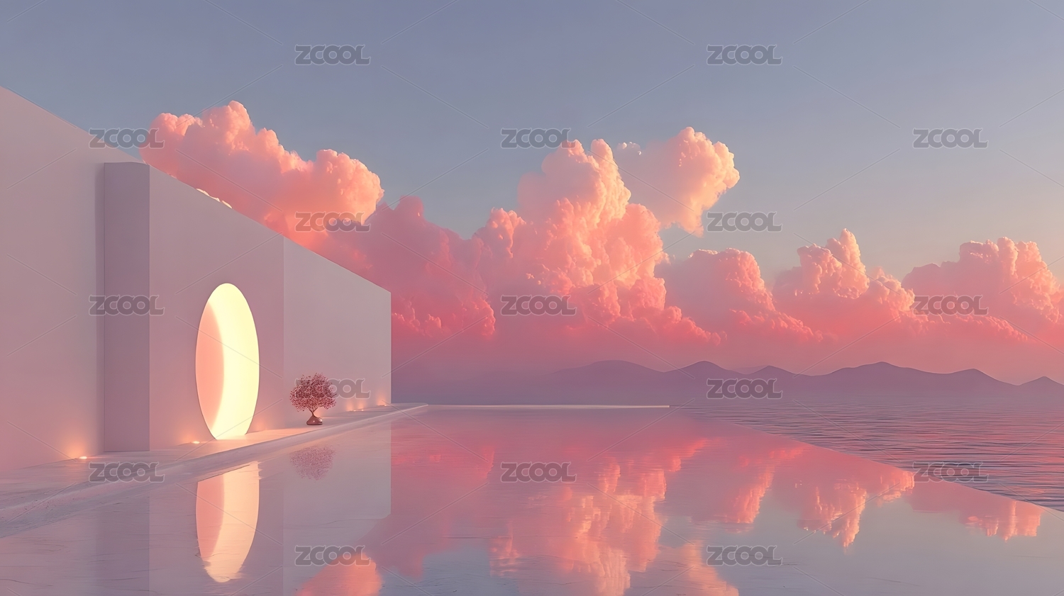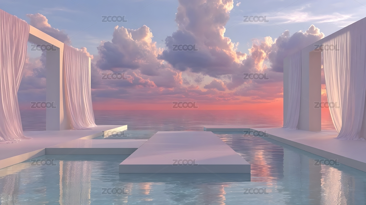 白色,柱子,艺术,平台,水面,室内,设计,现代,简约,装饰