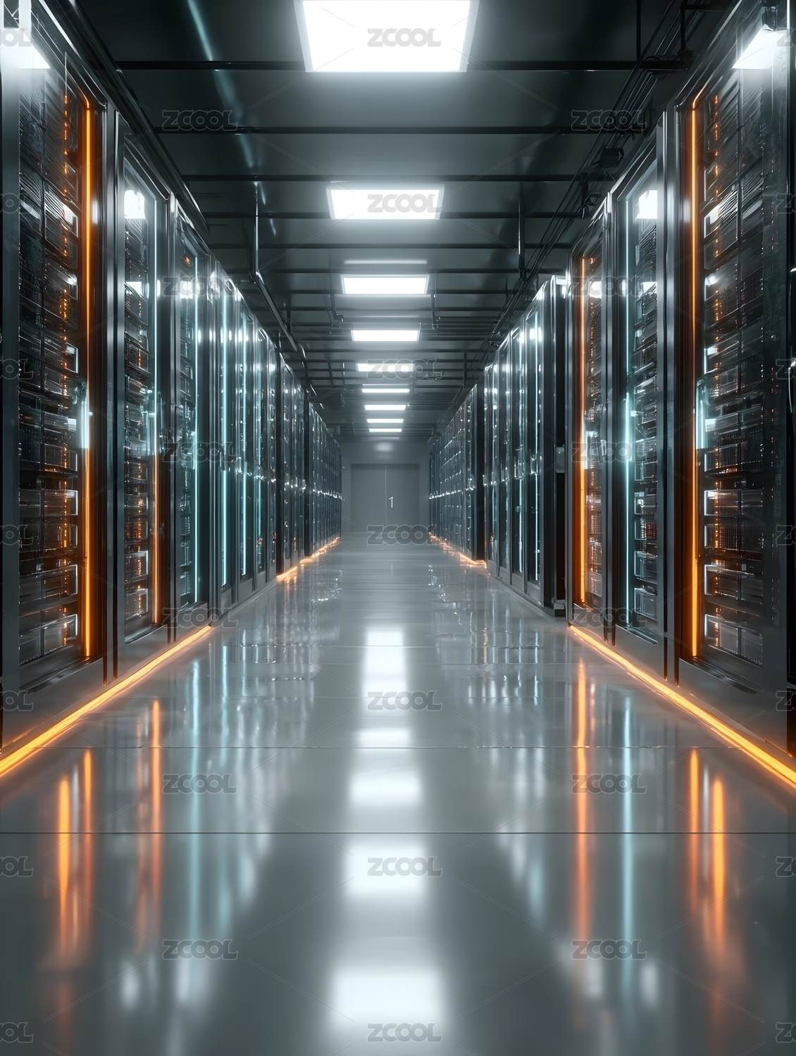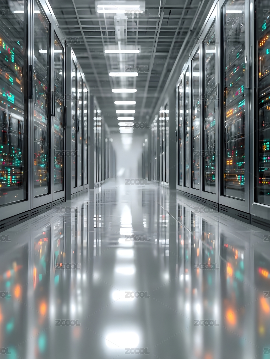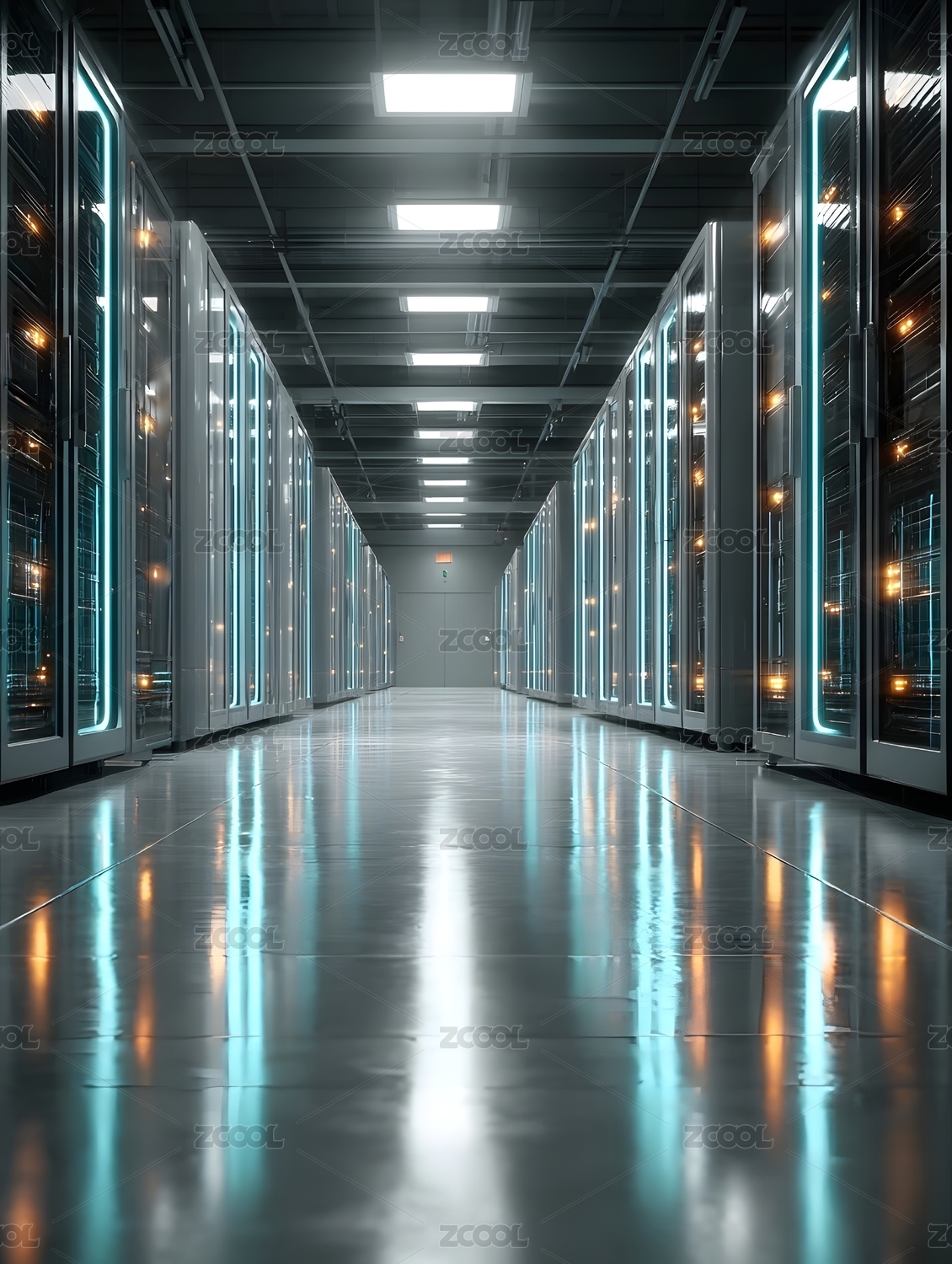 通道,灯光,玻璃,电缆,反射,金属,机房,服务器,机柜,走廊