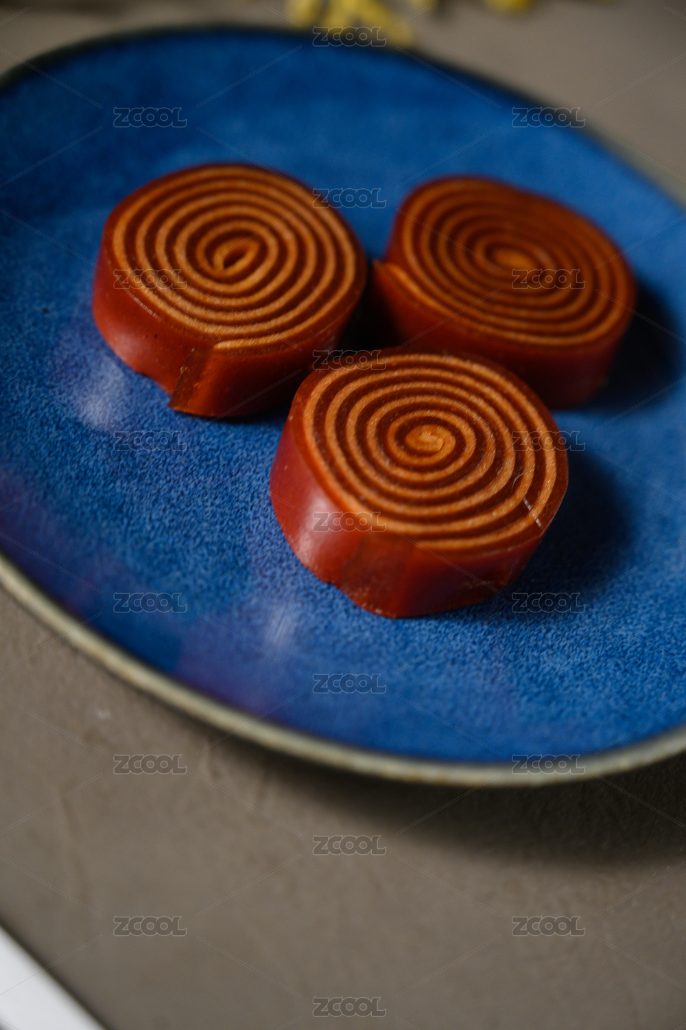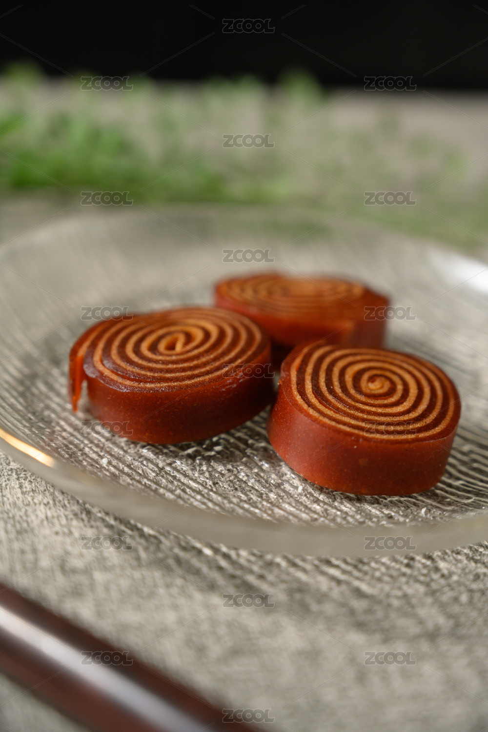 桌面上的盘子里的美味可口的山楂卷