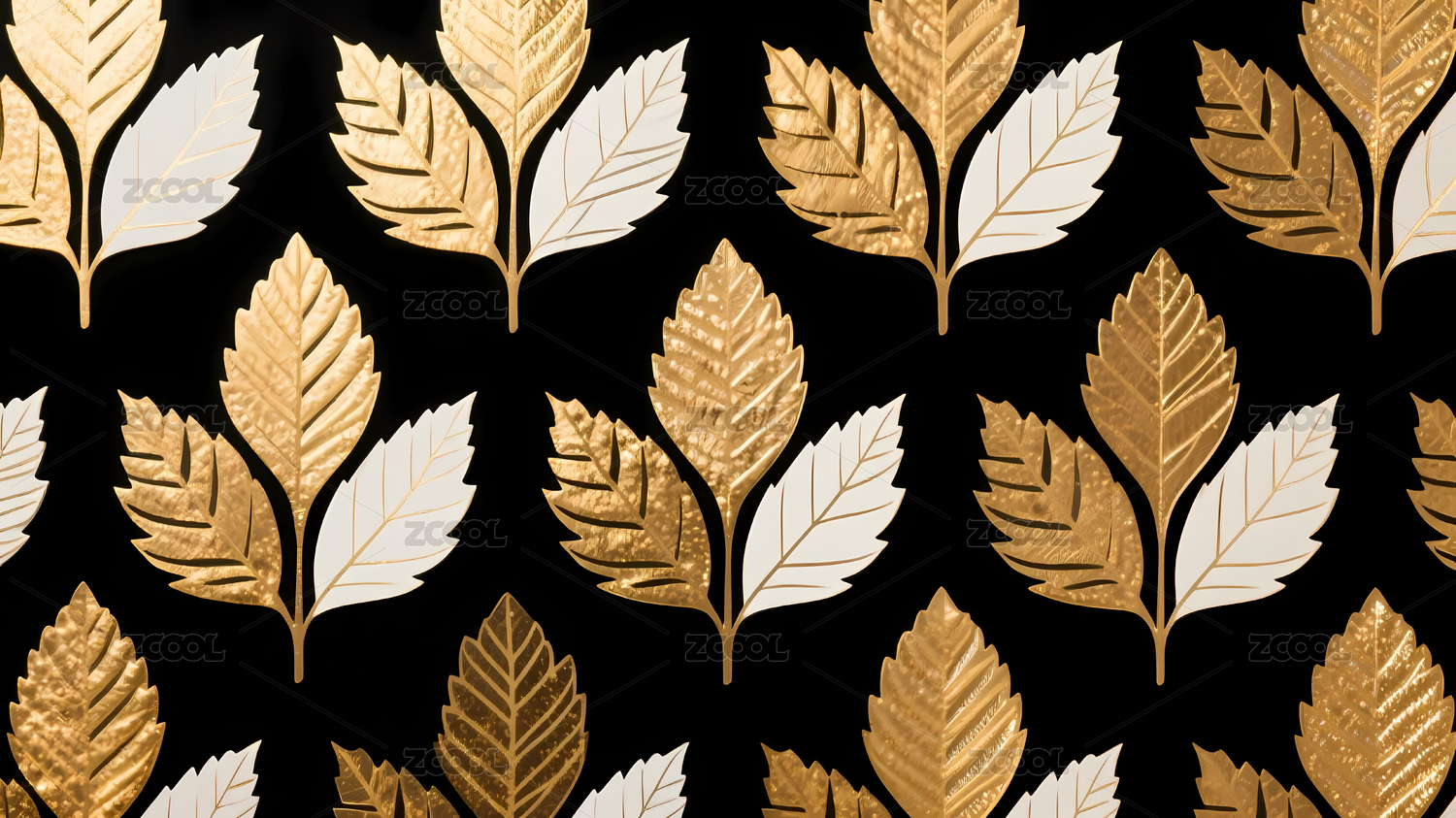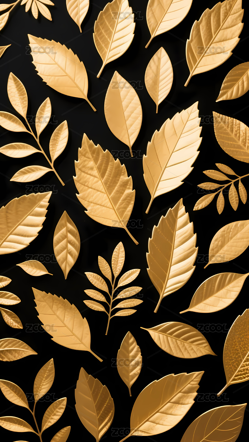 金色树枝与叶子的华丽图案