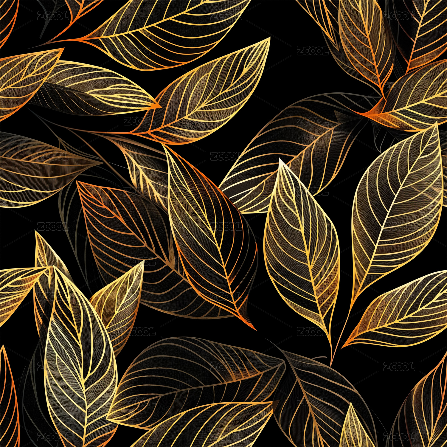 金色白叶黑背景装饰图案