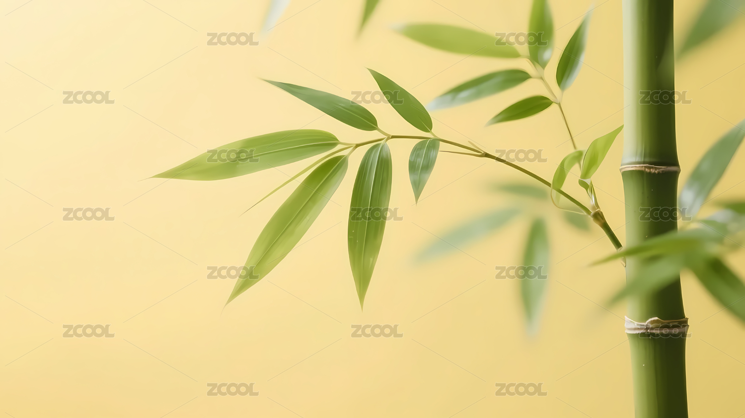 绿色竹叶柔黄背景
