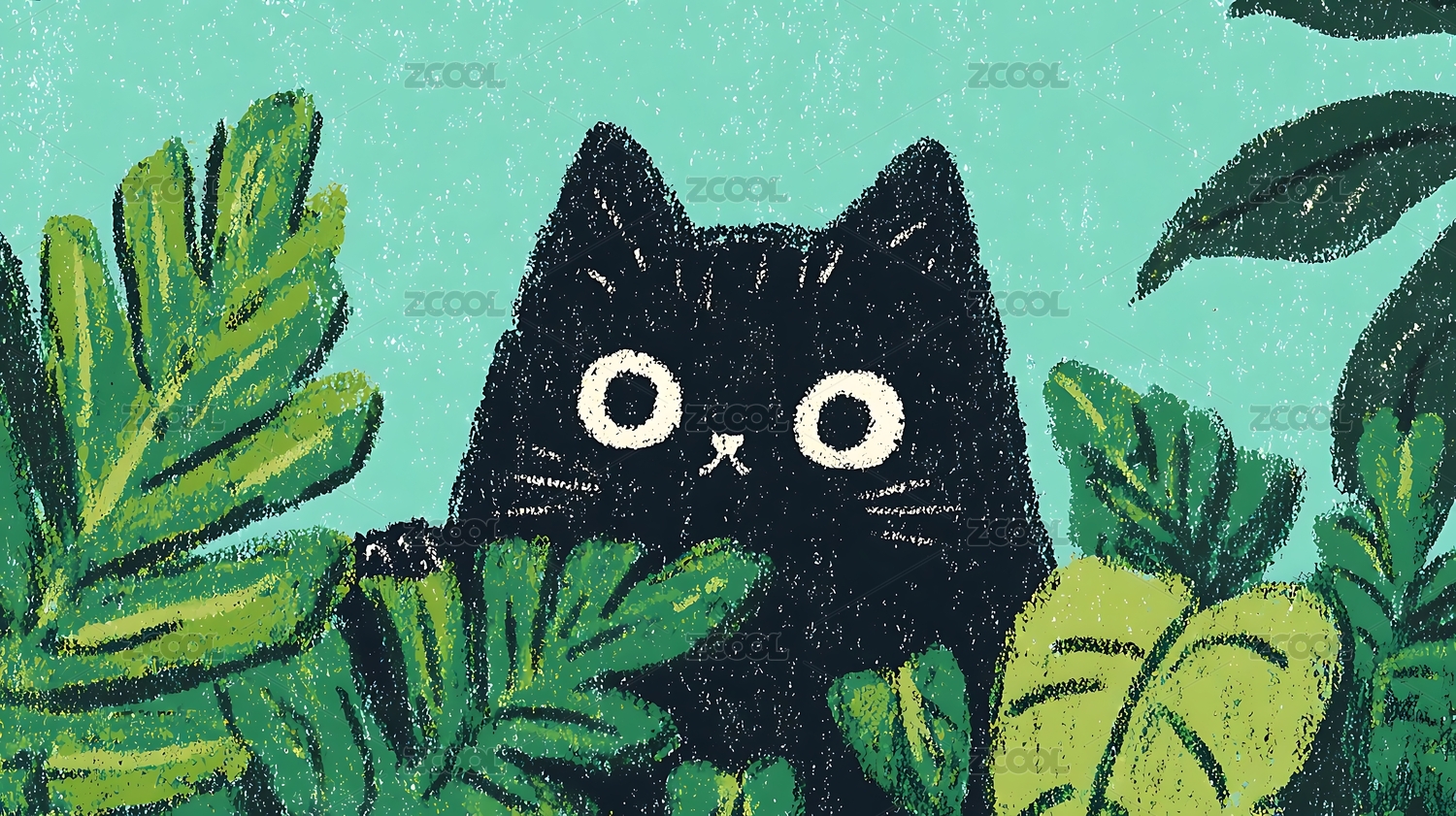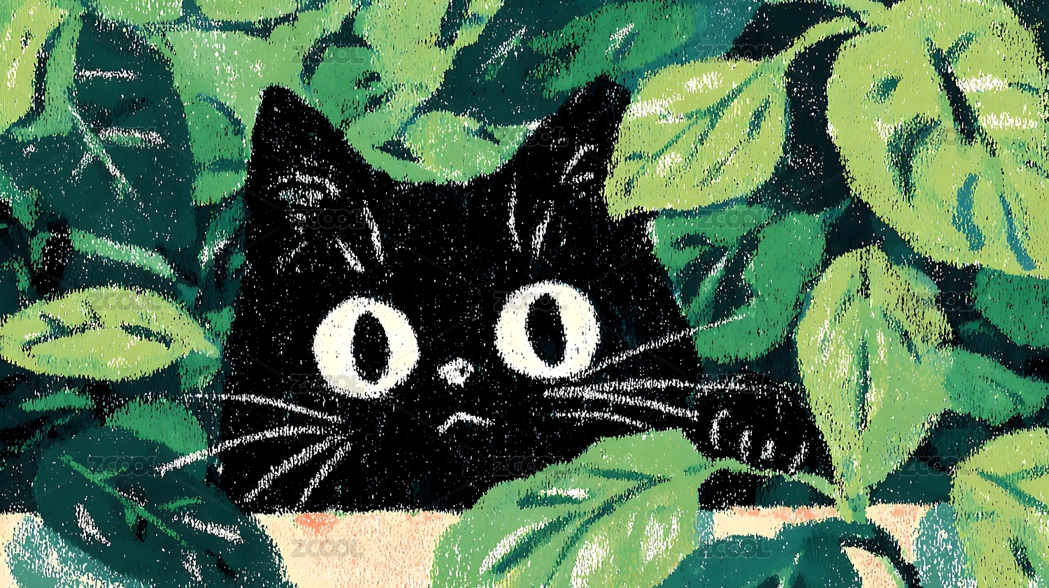 猫咪,可爱,插画,动物,萌宠,黑白,艺术,卡通,猫