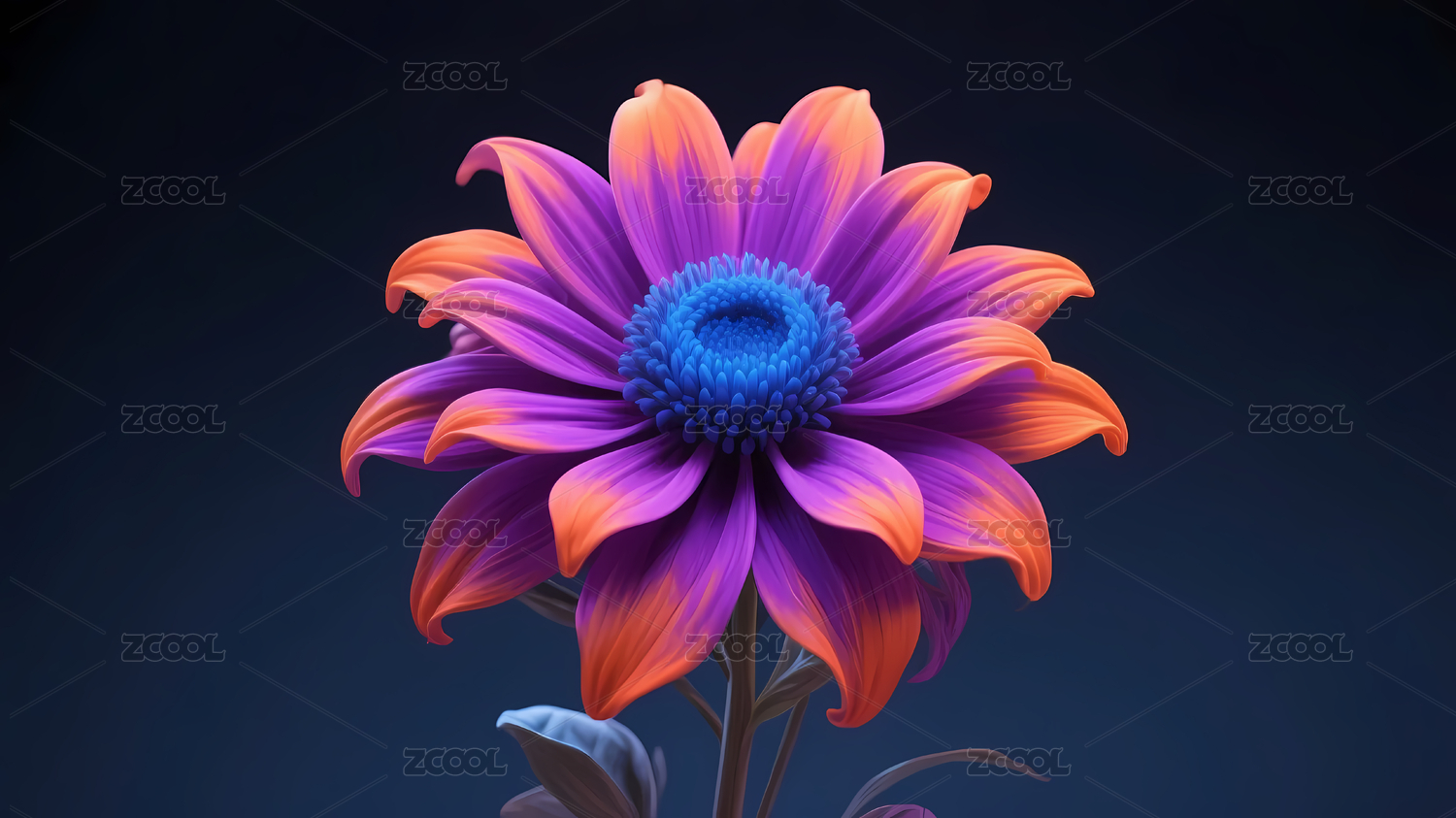 橙蓝渐变鲜艳花朵