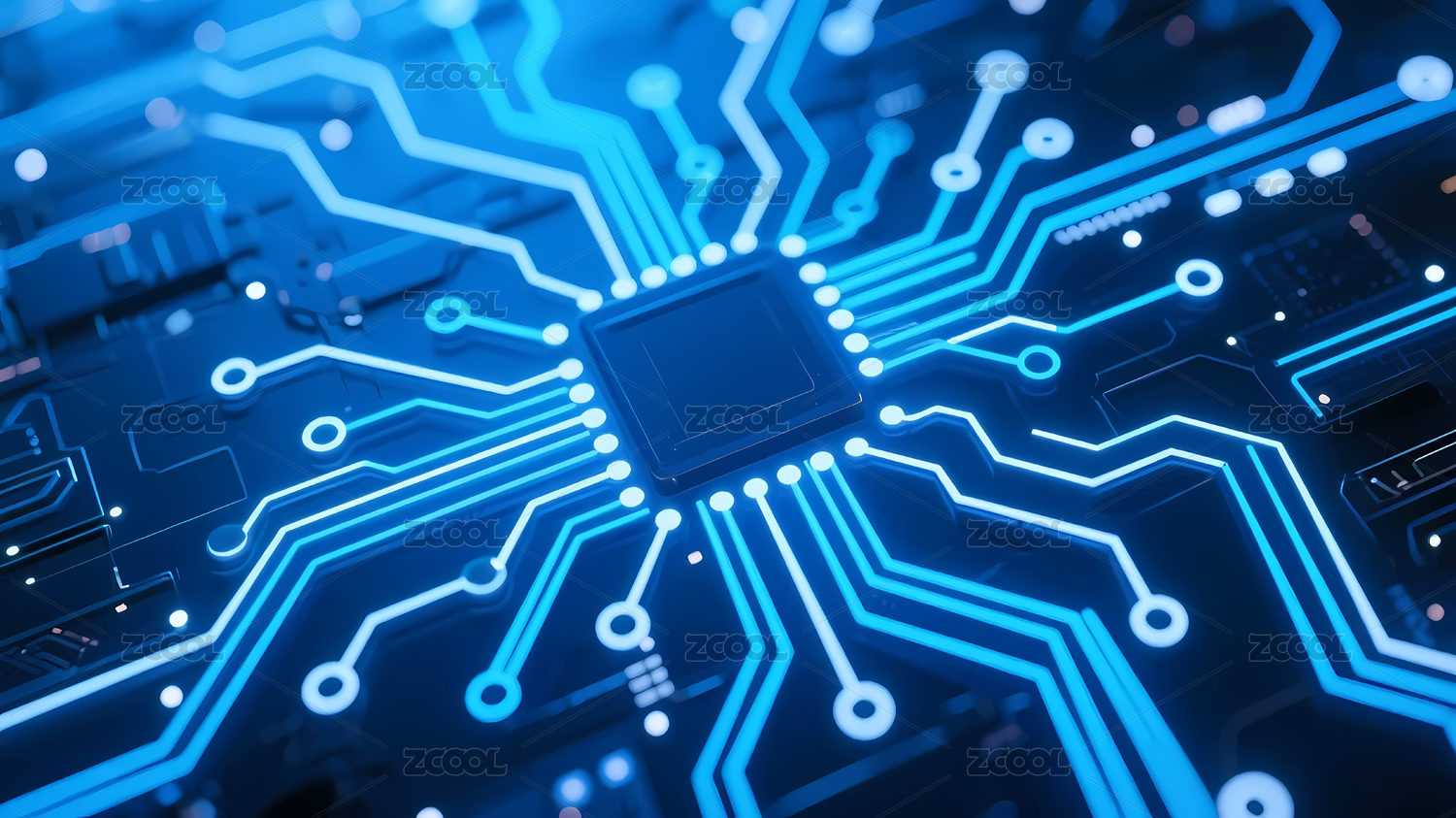蓝色,背景,视觉,电路,科技,深色,节点,芯片,发光,线条