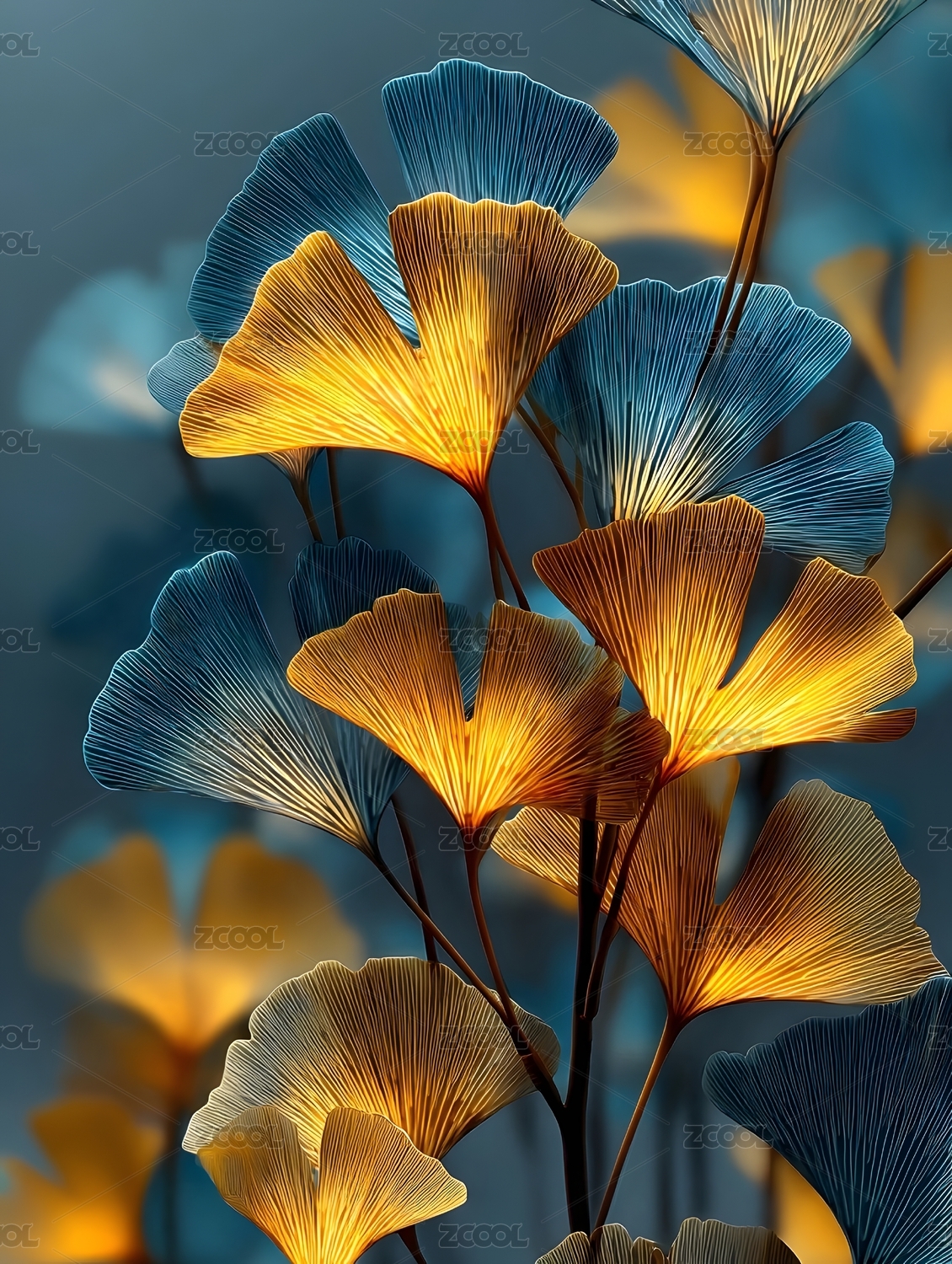 叶子,蓝色,金色,装饰,艺术,花纹,叶脉,图案,背景,植物