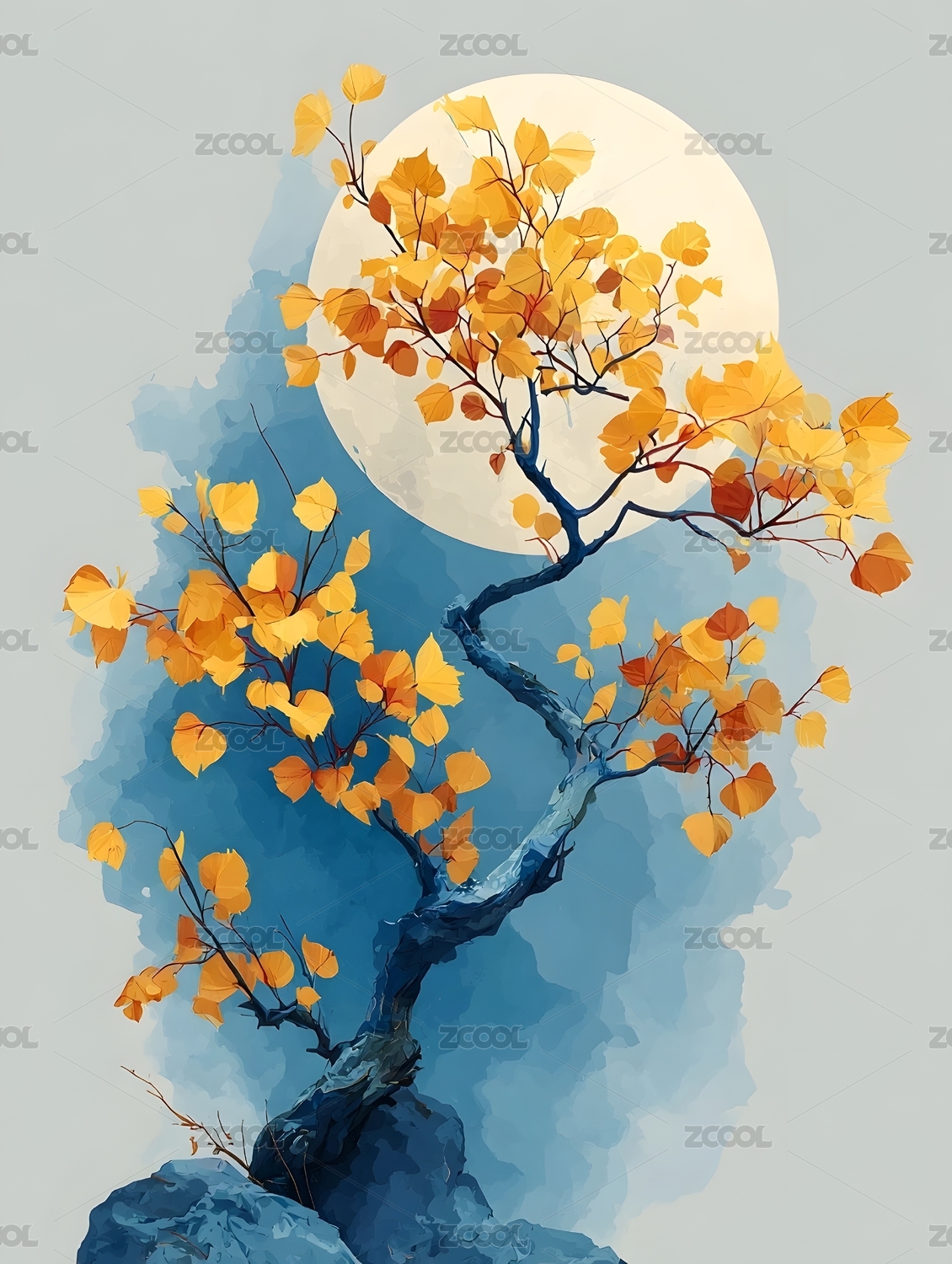 自然,风景,黄色,叶子,蓝色,装饰,艺术,图案,背景,创意