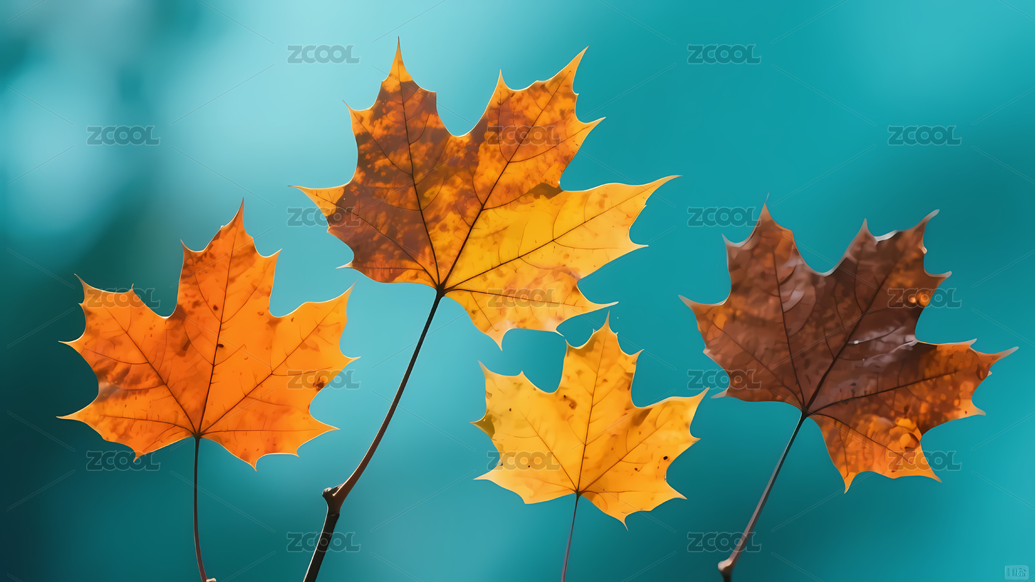 自然,宁静,柔和,细节,渐变,树枝,秋叶,橙黄,棕色,蓝绿