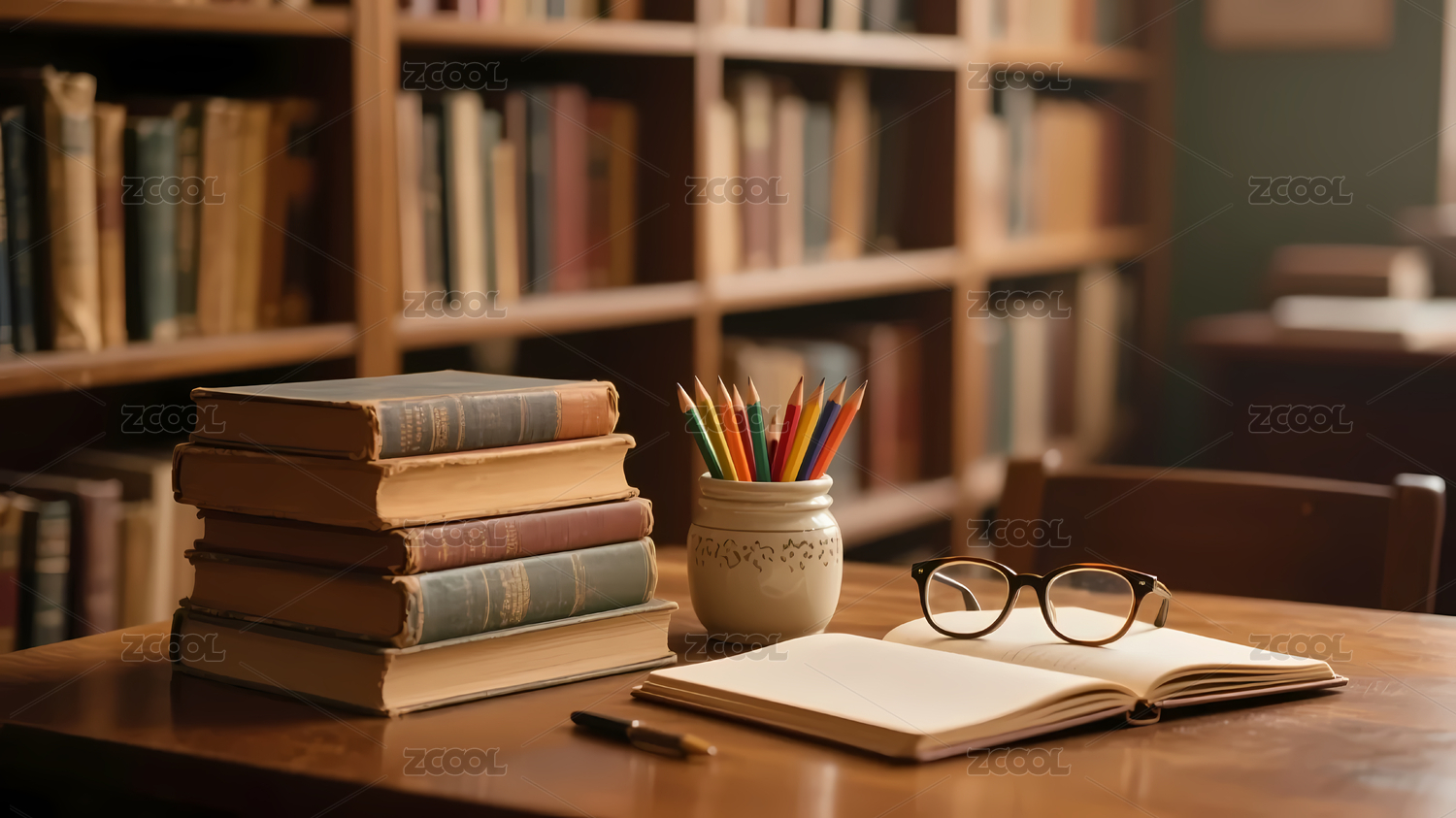 书本与木质桌面的温暖瞬间
