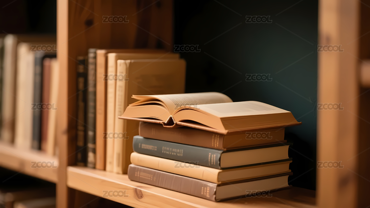 旧书与木质桌面
