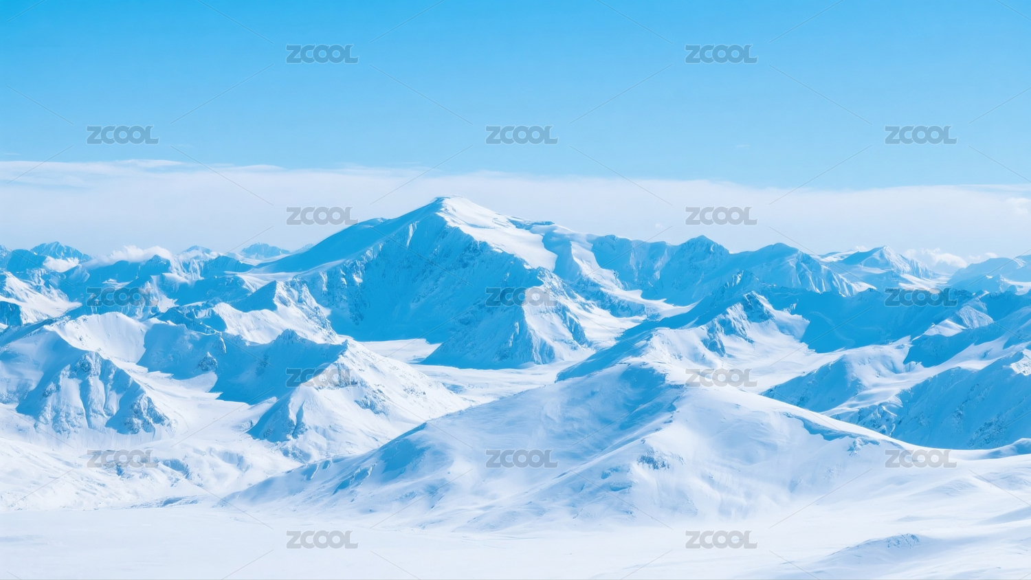 雪山蓝天壮丽景色冰雪覆盖纯洁无瑕