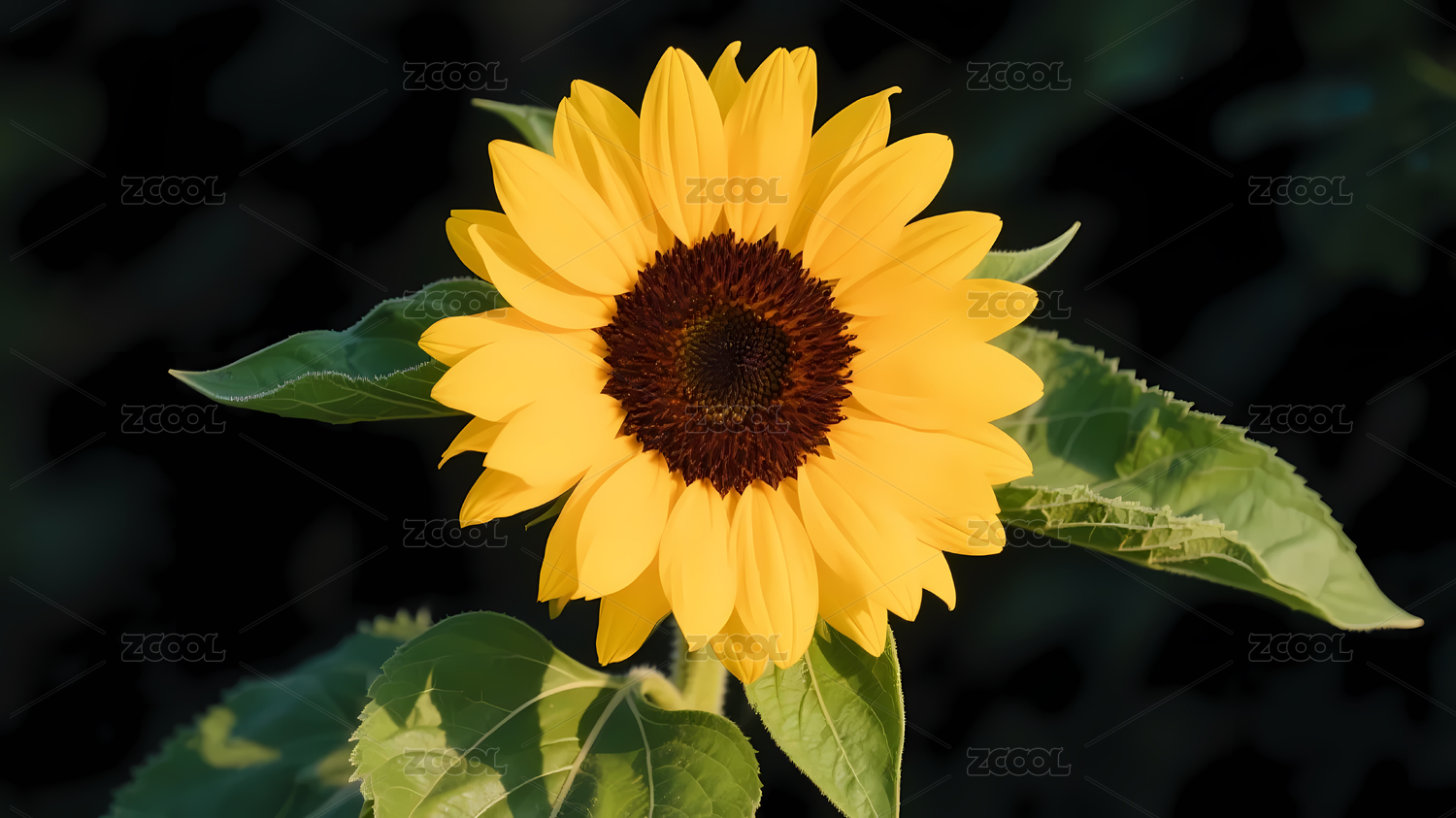 鲜艳,花卉,背景,深色,自然,绿色,黄色,叶子,向日葵,植物