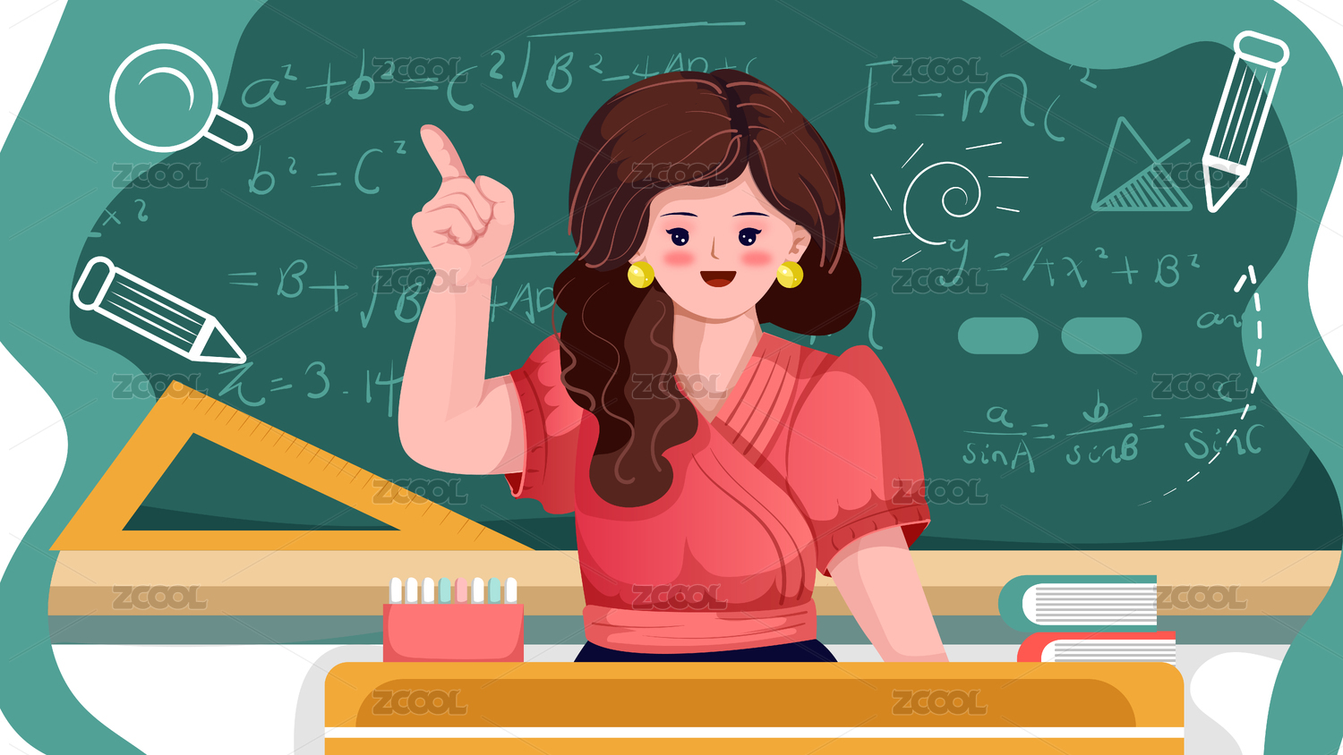 数学教师课堂授课讲解插画场景