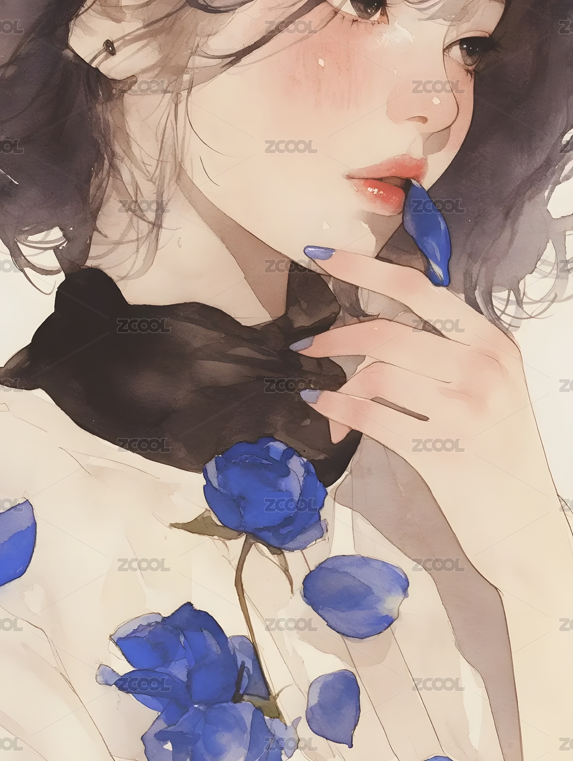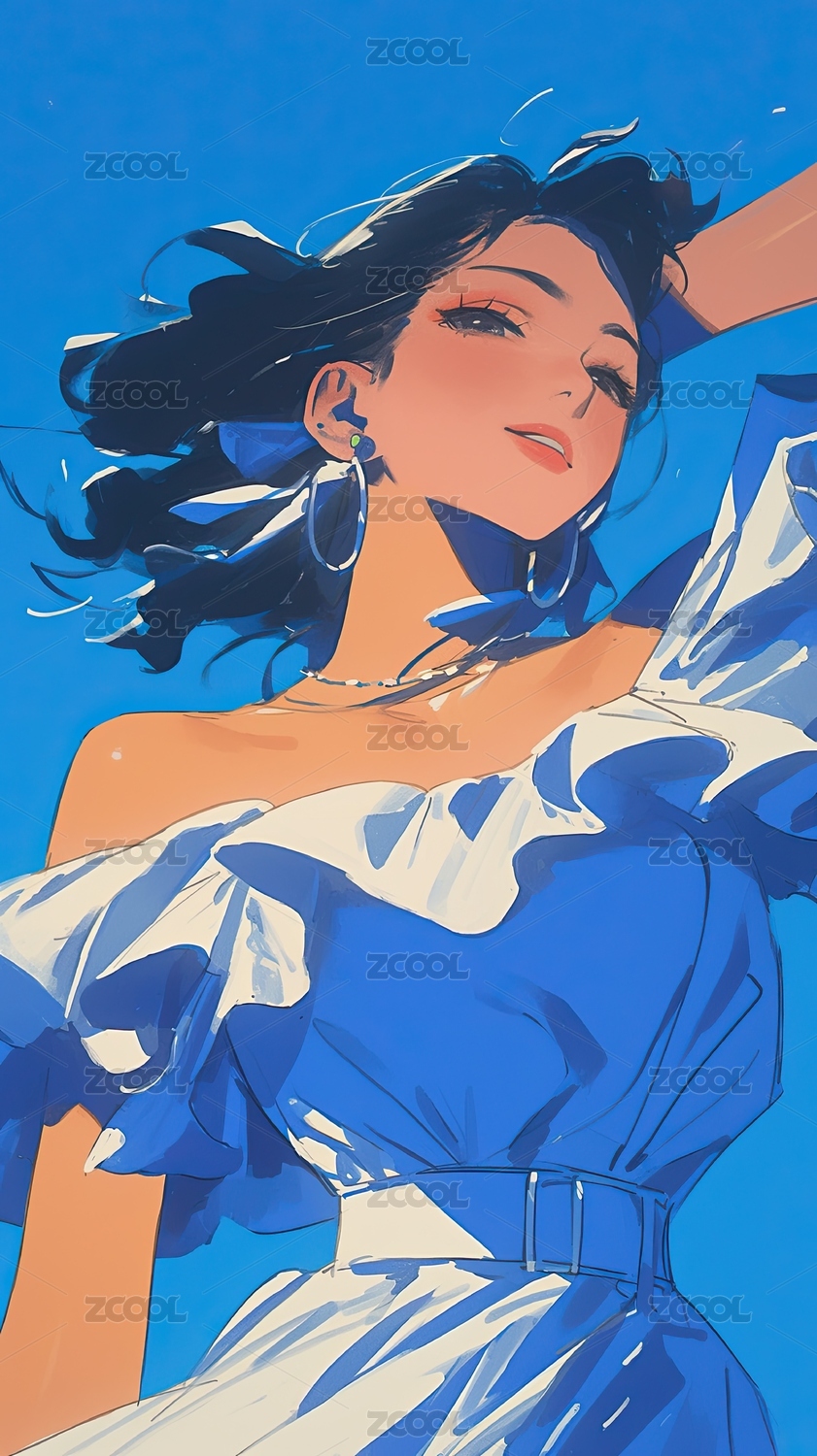 动漫,卡通,插画,漫画,色彩,梦幻,细腻,女性,蓝色,温柔