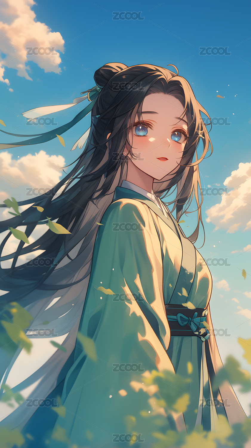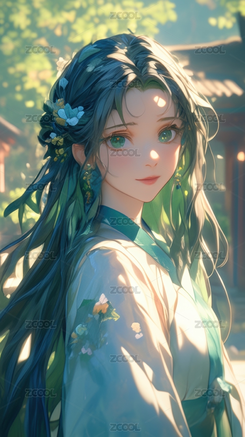 少女,动漫,卡通,插画,人,漫画,长发,背景,自然,色彩