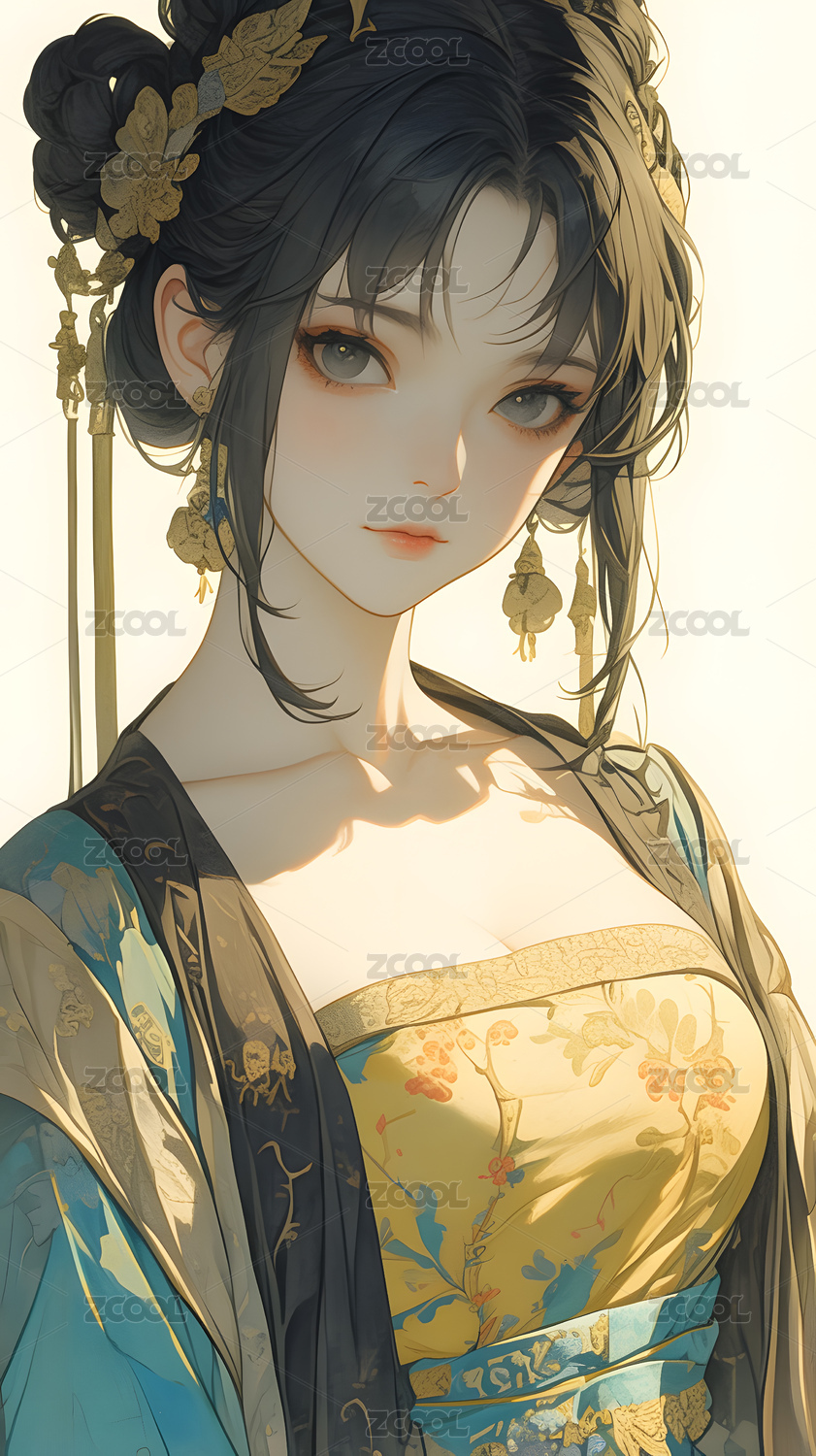 秋日金箔华服女子