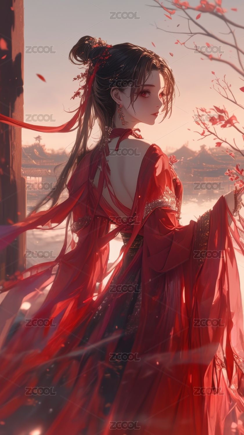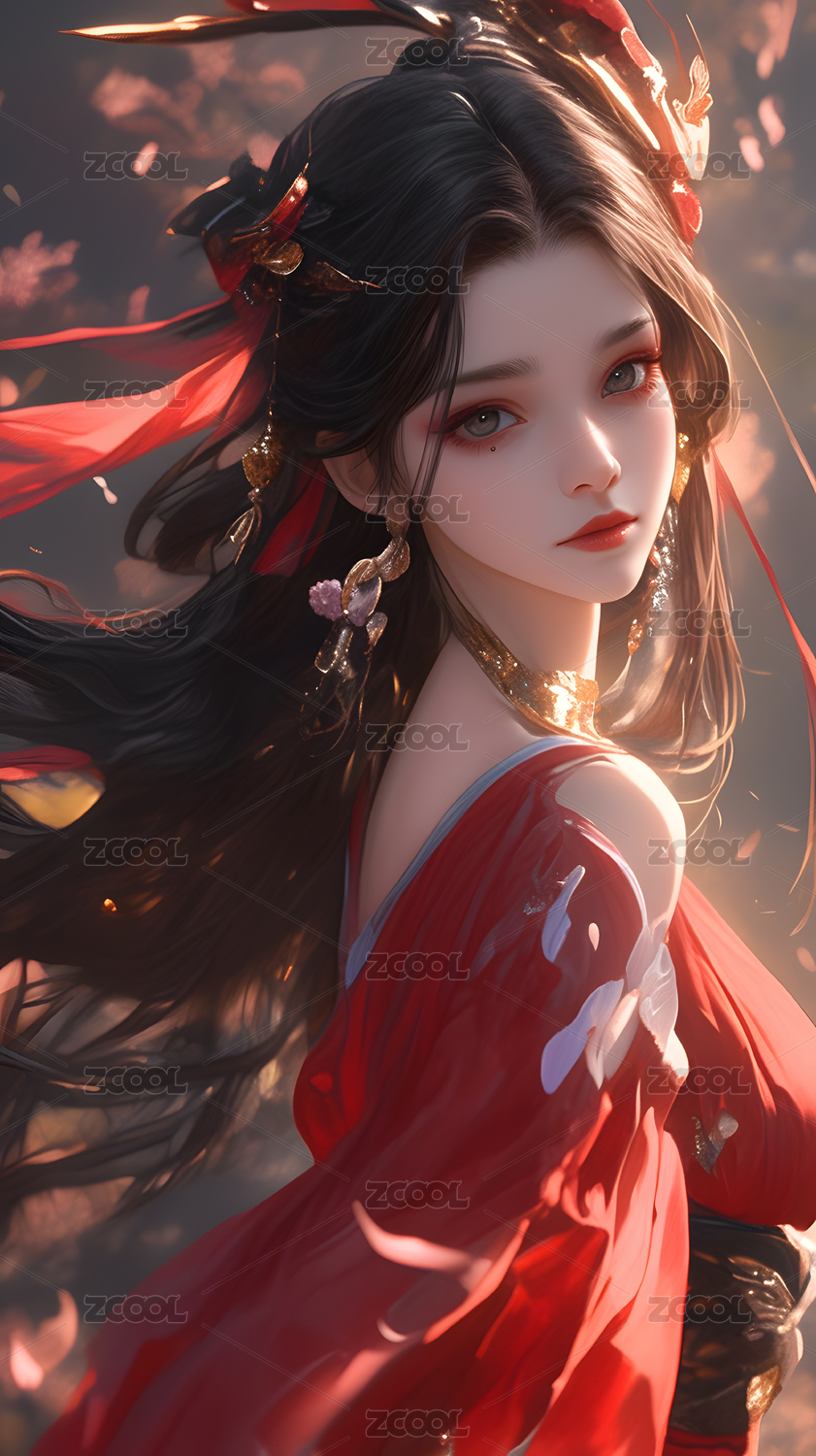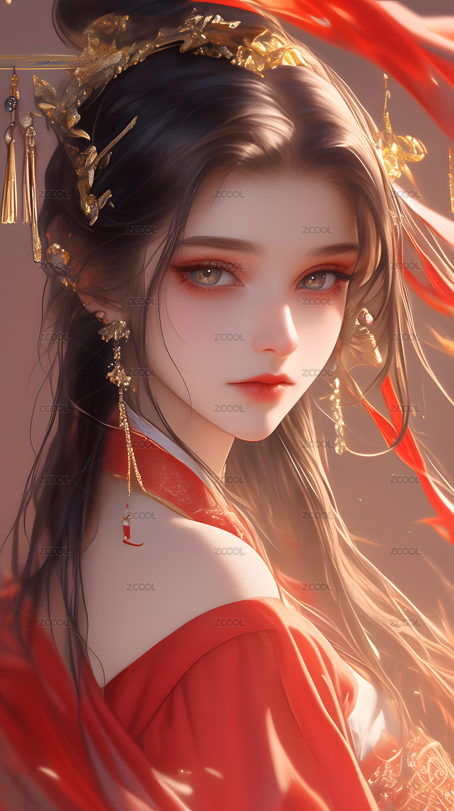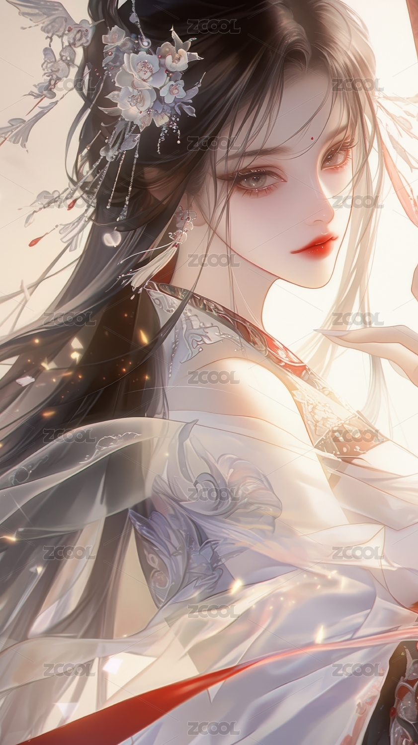 动漫,卡通,插画,漫画,女子,服饰,长发,背景,优雅,色彩