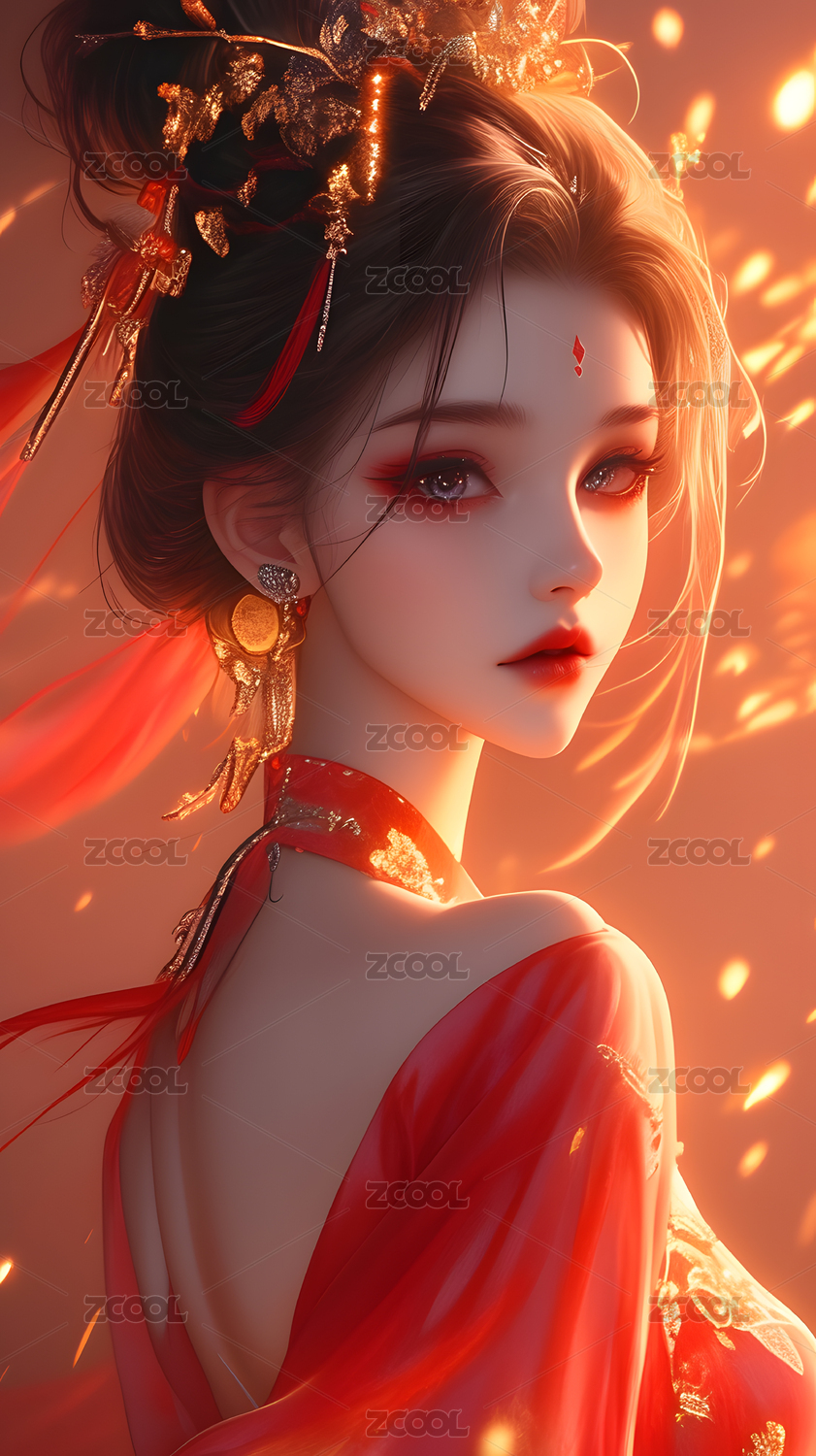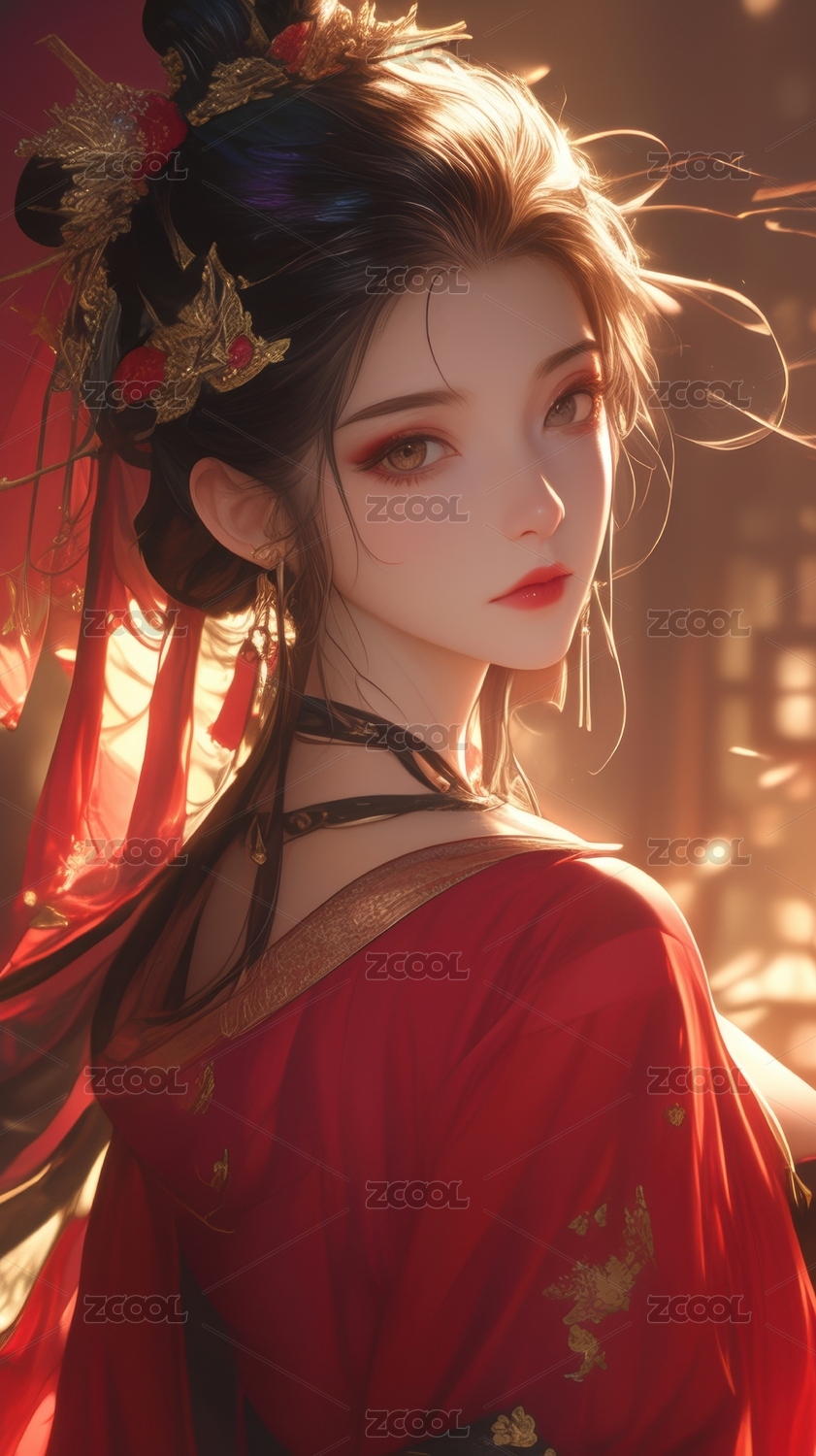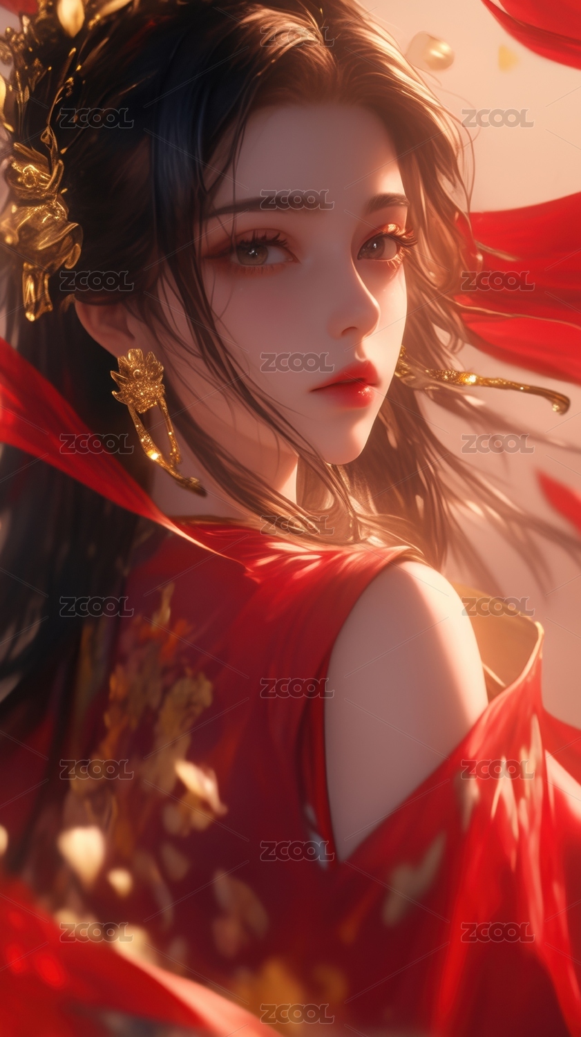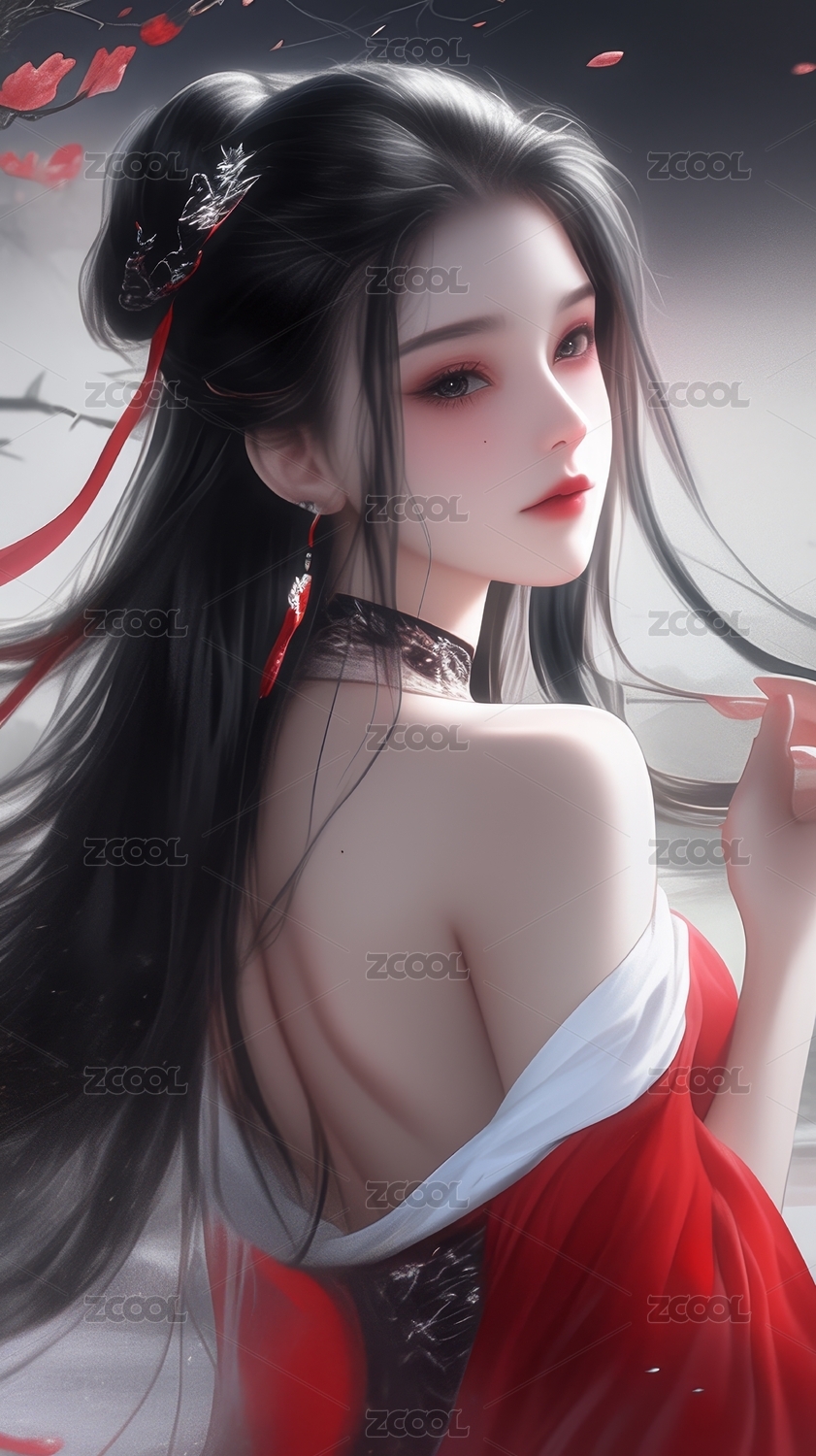 动漫,卡通,插画,漫画,女子,服饰,长发,背景,优雅,色彩