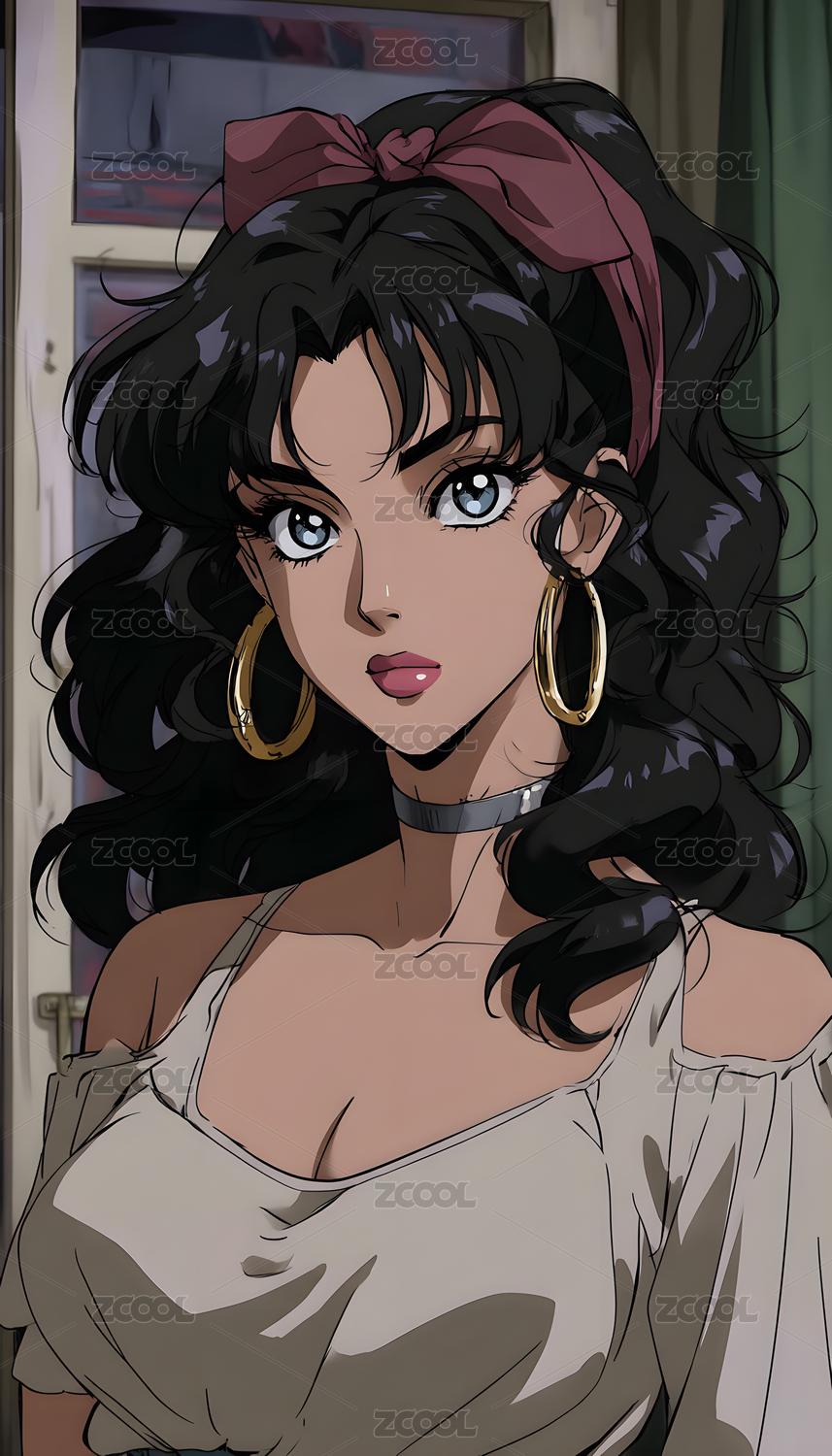 复古日漫风格人物衬衫牛仔裤休闲少女