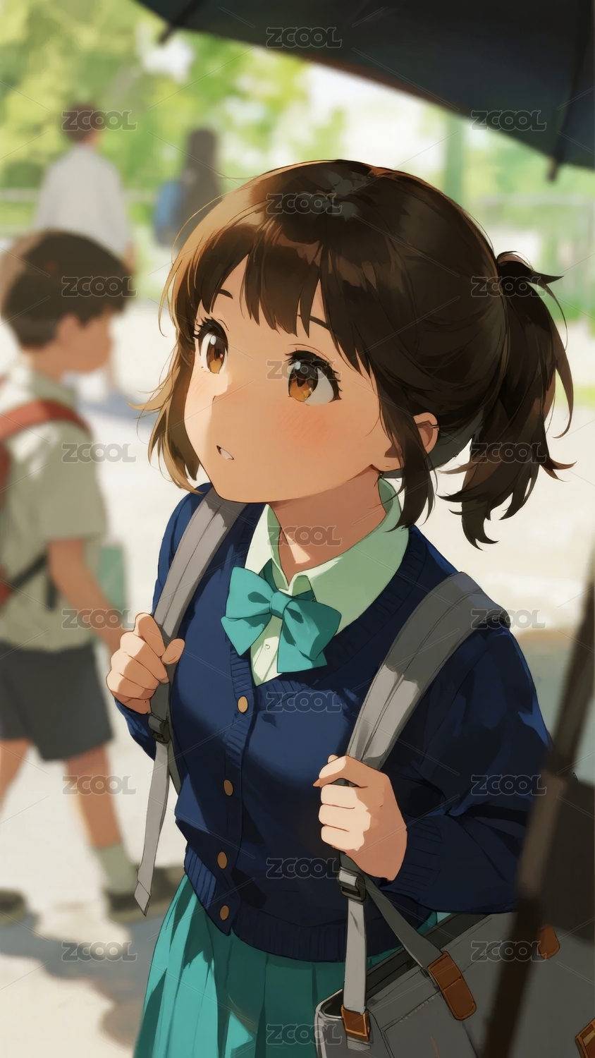 明亮,温馨,卡通,女孩,背景,青春,可爱,头发,简洁,风格