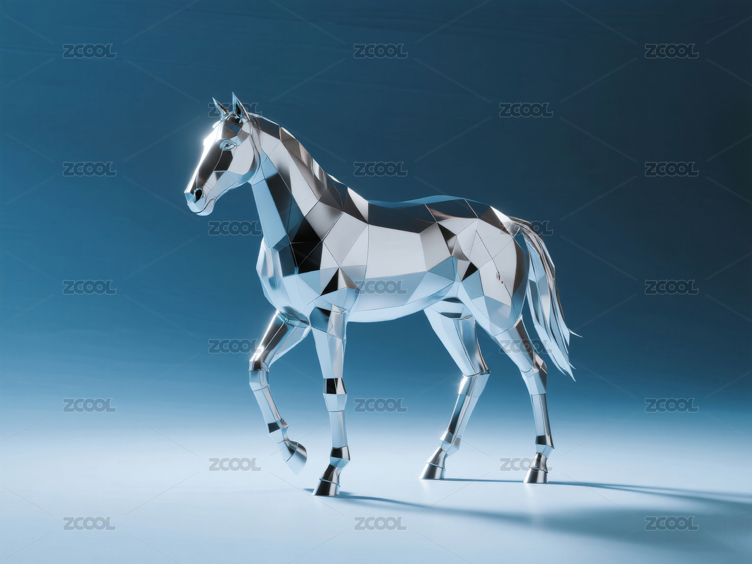 灰色背景矗立着一匹低矮的多边形马高清图片