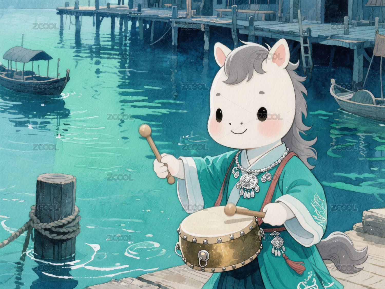 河边敲鼓的小马