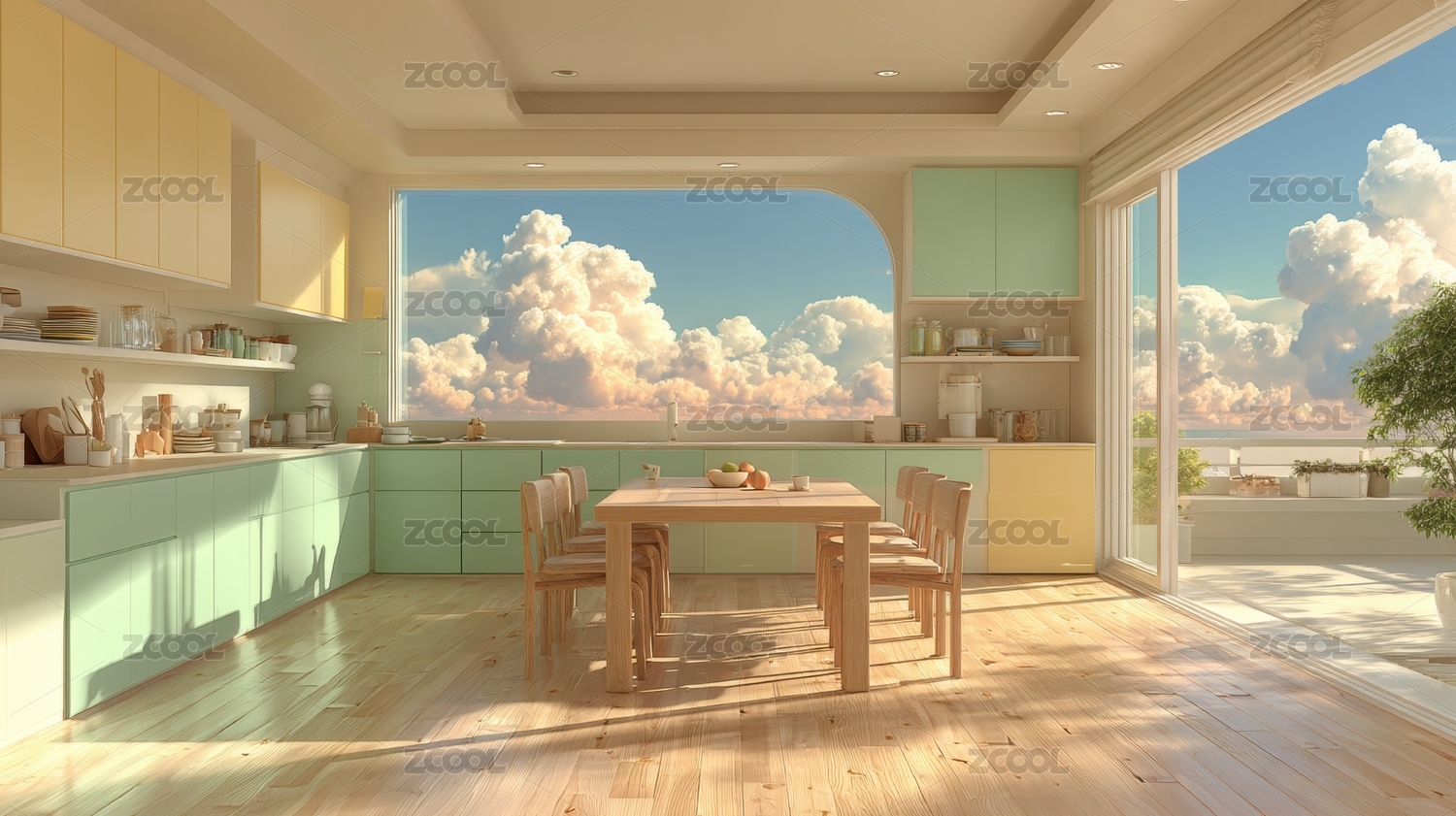 窗户,地板,室内,现代,明亮,装饰,墙面,植物,餐厅,餐桌