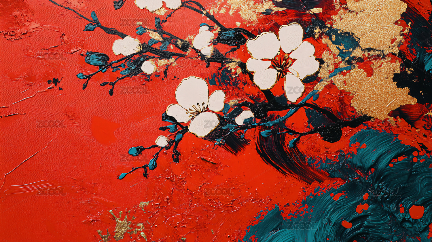 红色花朵艺术画作