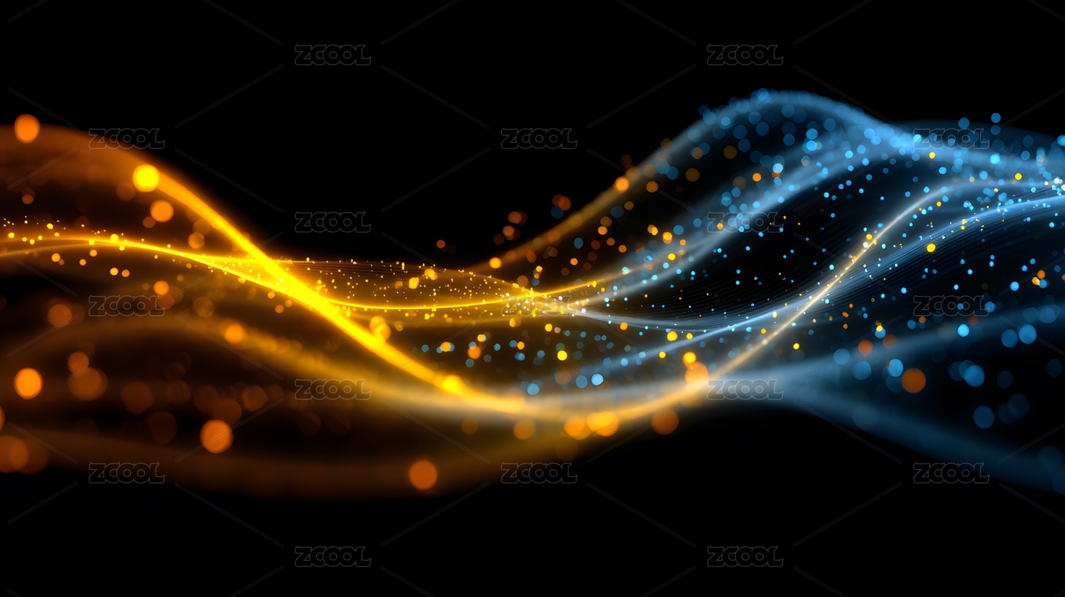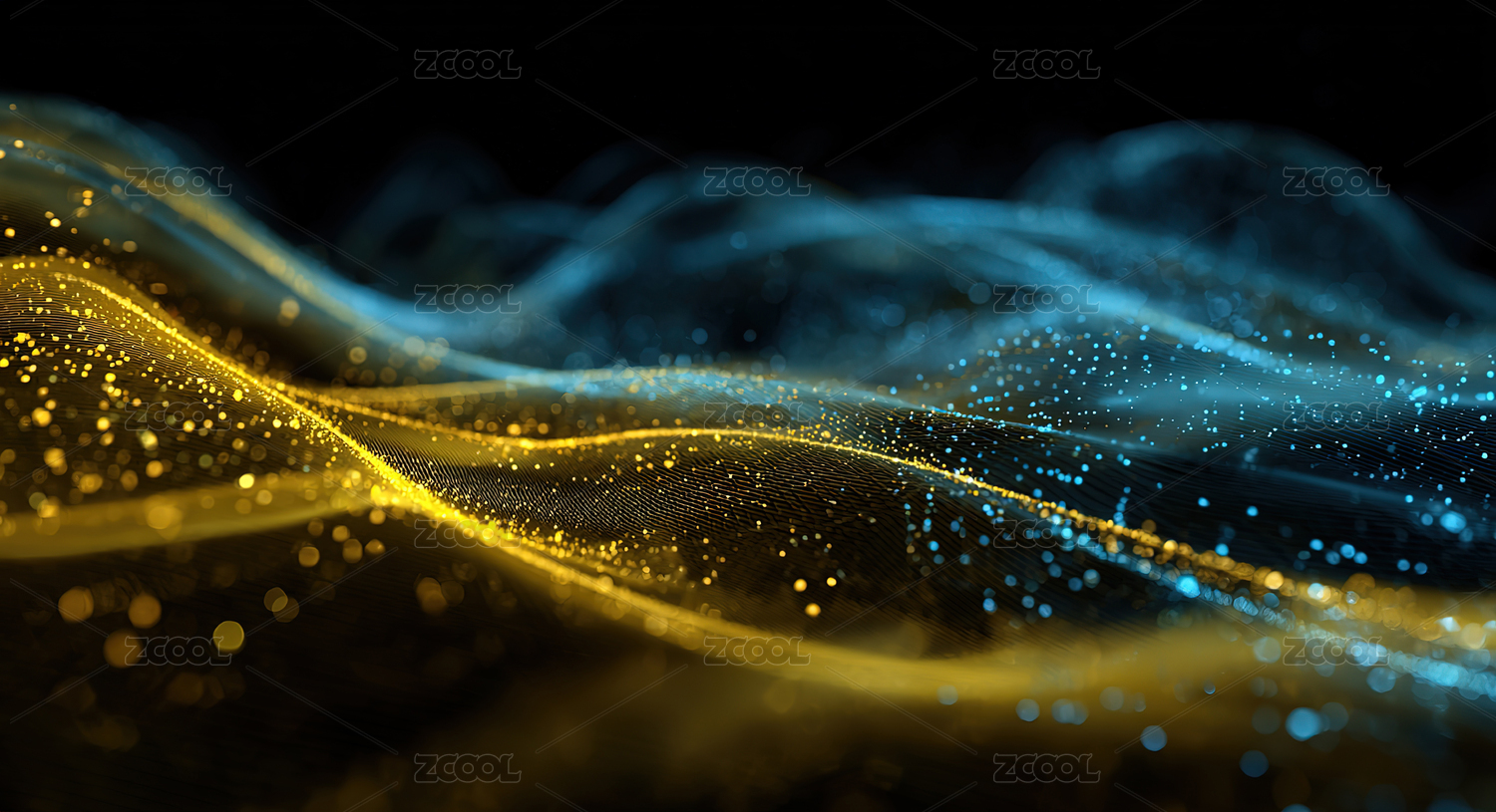 金色与蓝色粒子波浪流动