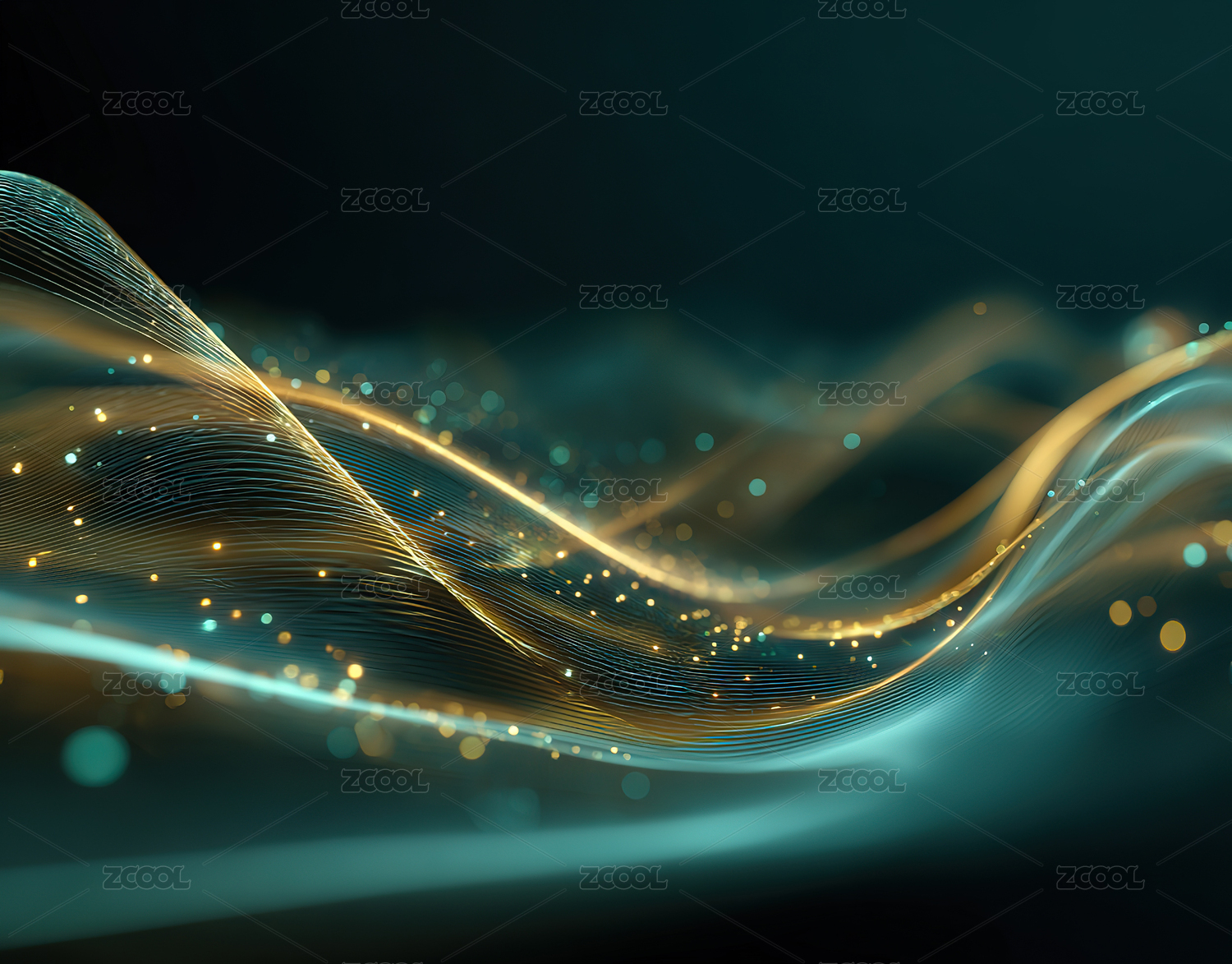 奢华金色波浪与光点的流动背景