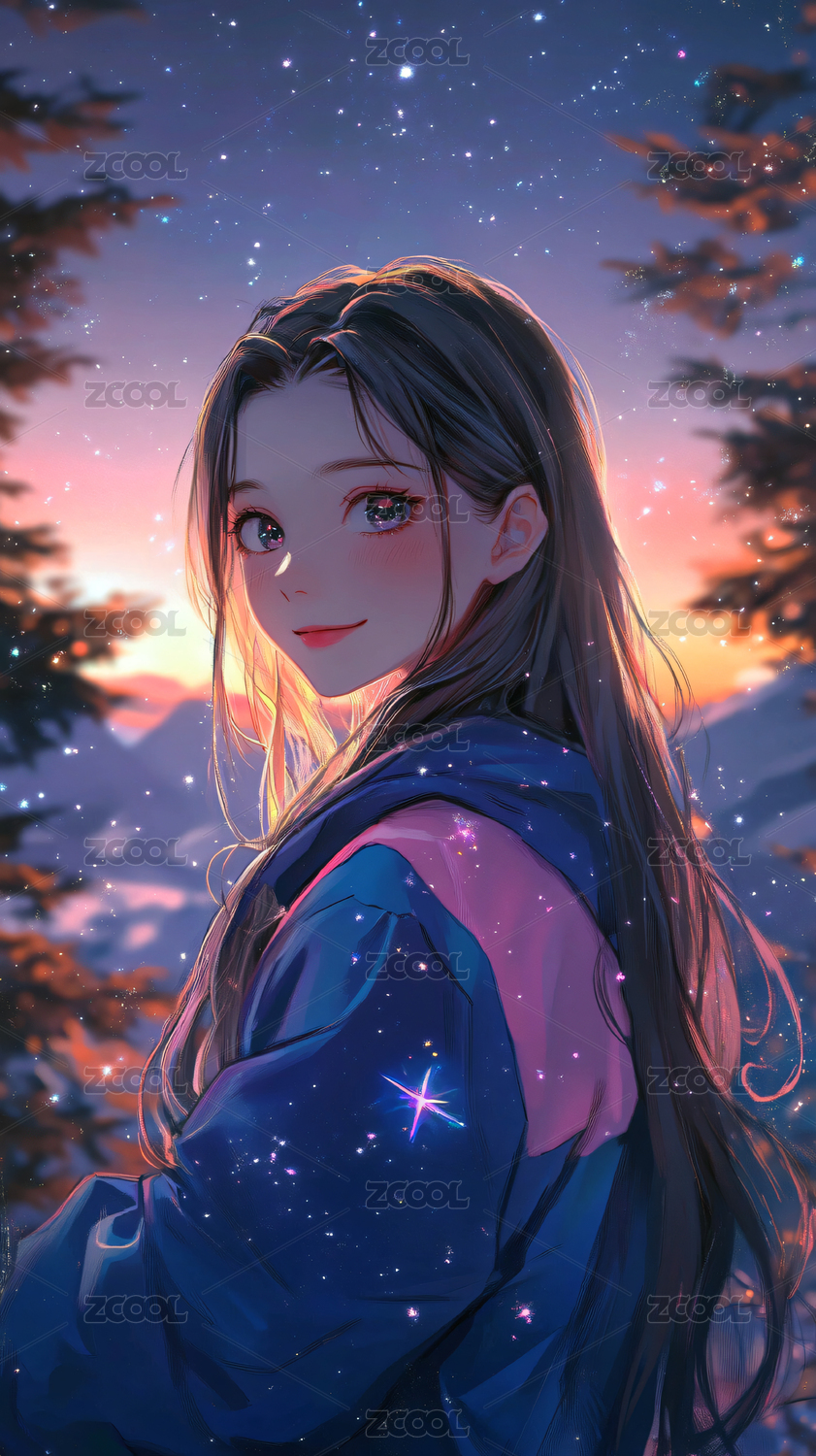 少女,户外,卡通,插画,动漫,漫画,梦幻,长发,微笑,美丽