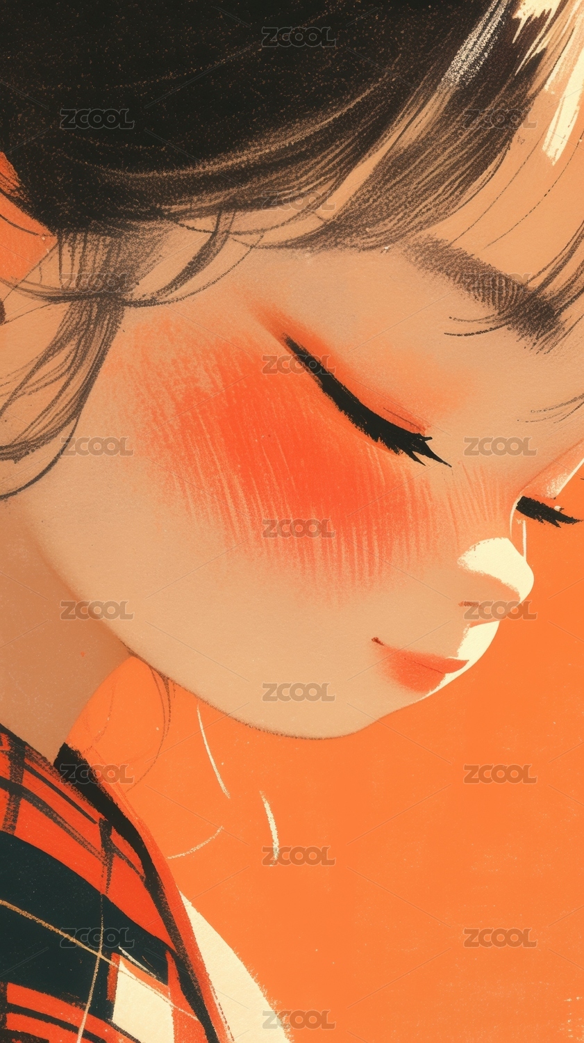 侧脸女性插画温暖色调