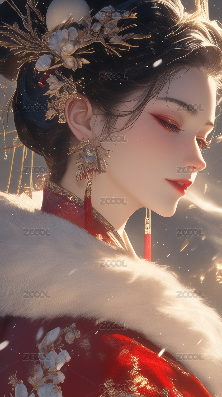 华丽古装女子侧脸特写
