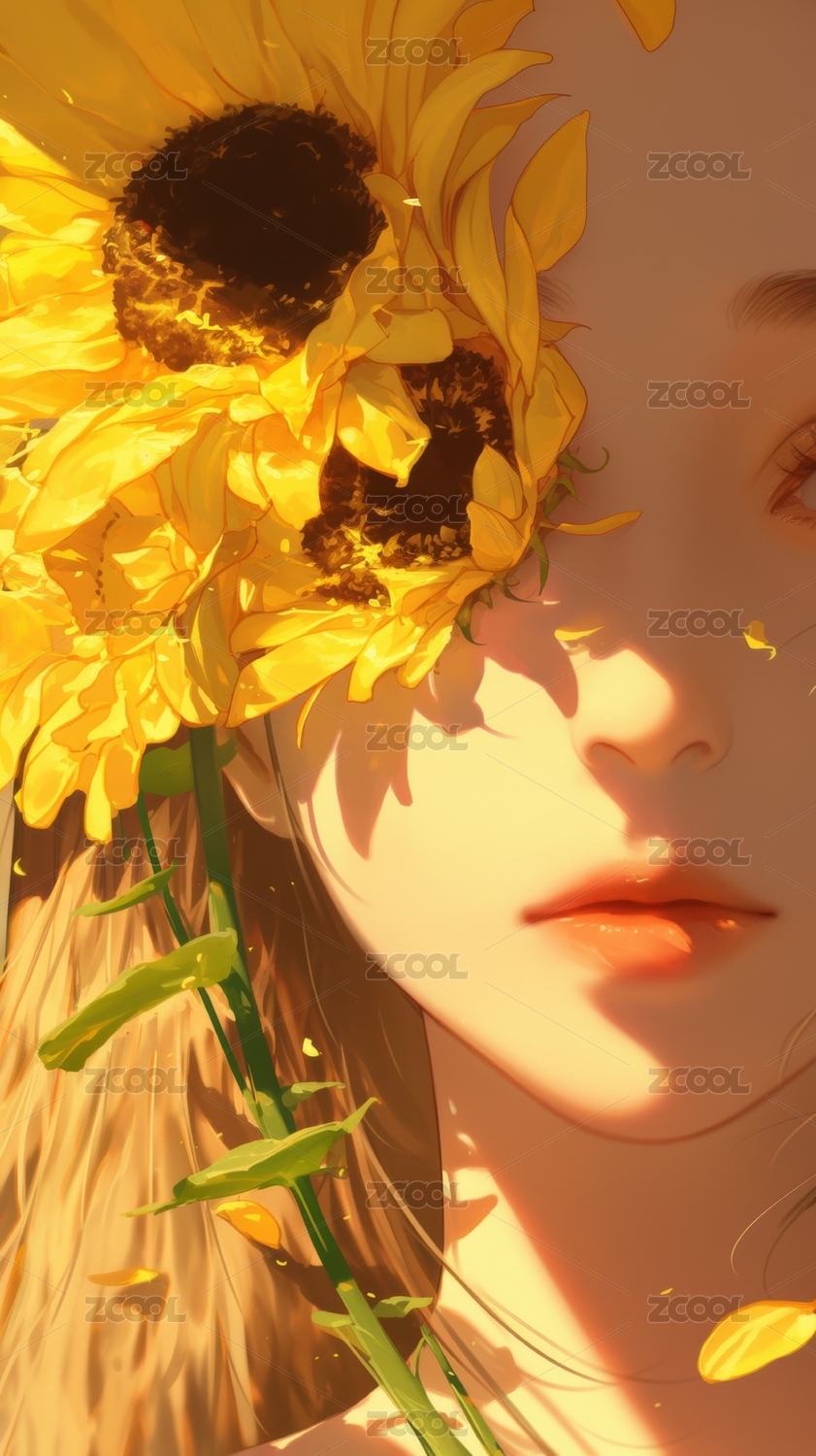向日葵与眼眸的光影交织