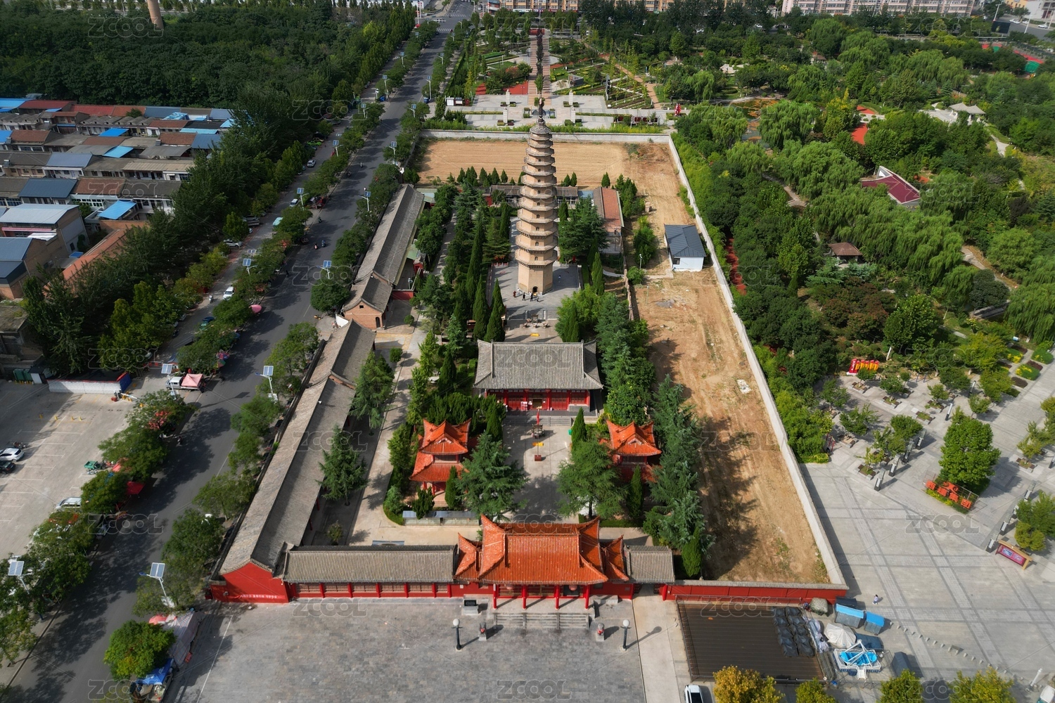 山西省朔州市辽代应县木塔夏季白天航拍风光