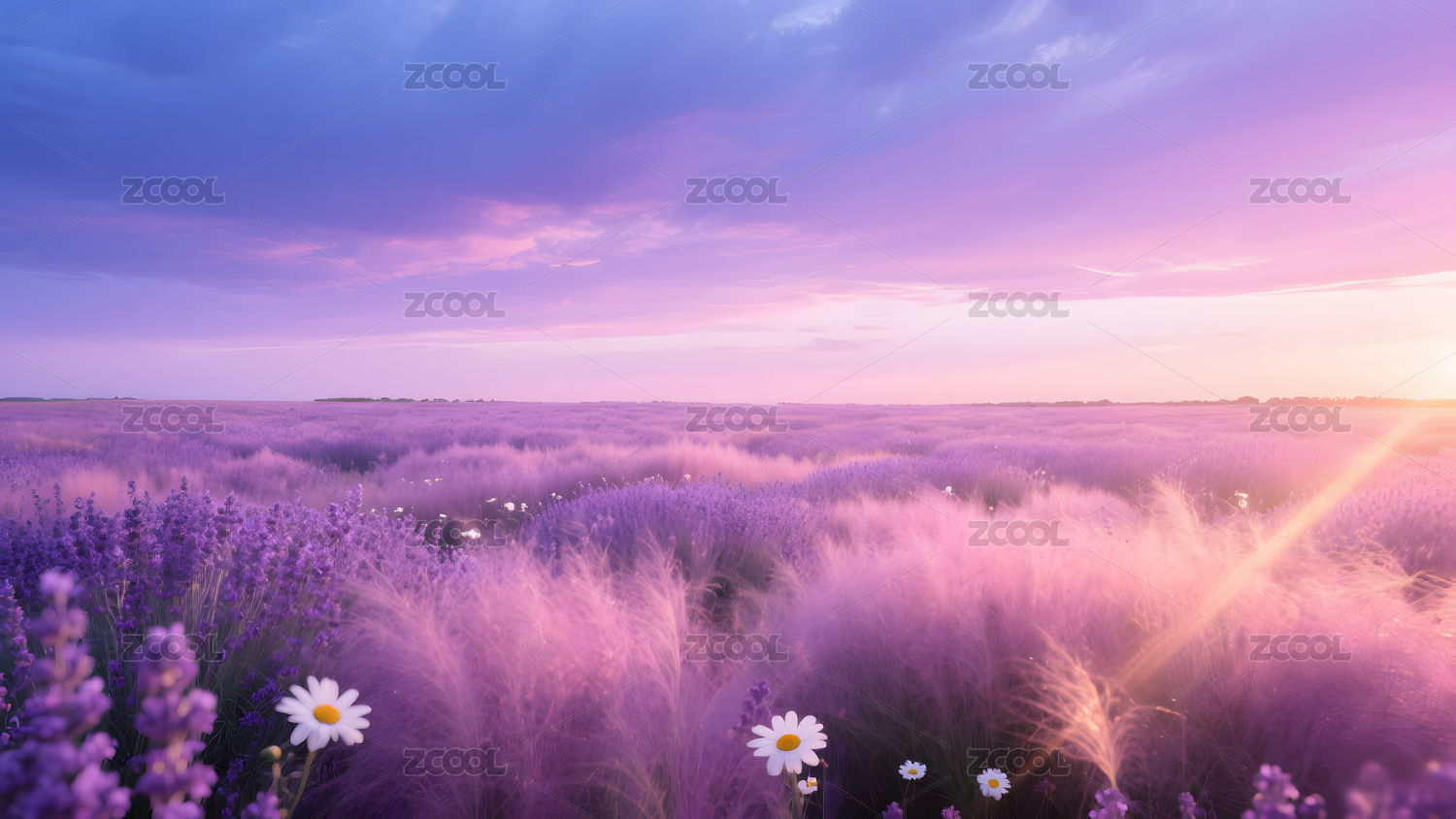 紫色薰衣草花海与日落美景